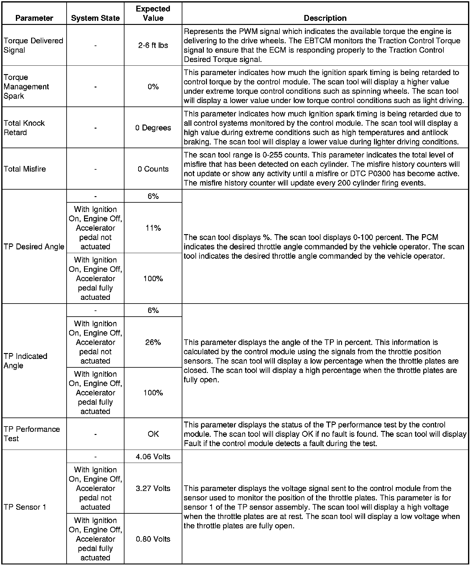 Only the parameters listed below are referenced in this service manual for use in diagnosis. If all values are within the typical range described below, refer to Symptoms - Engine Controls (- Symptoms - Engine Controls) for the 4.2L engine for diagnosis.