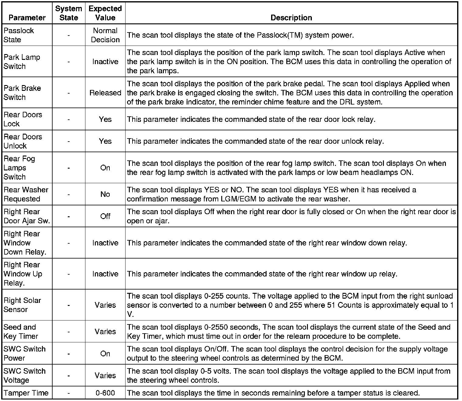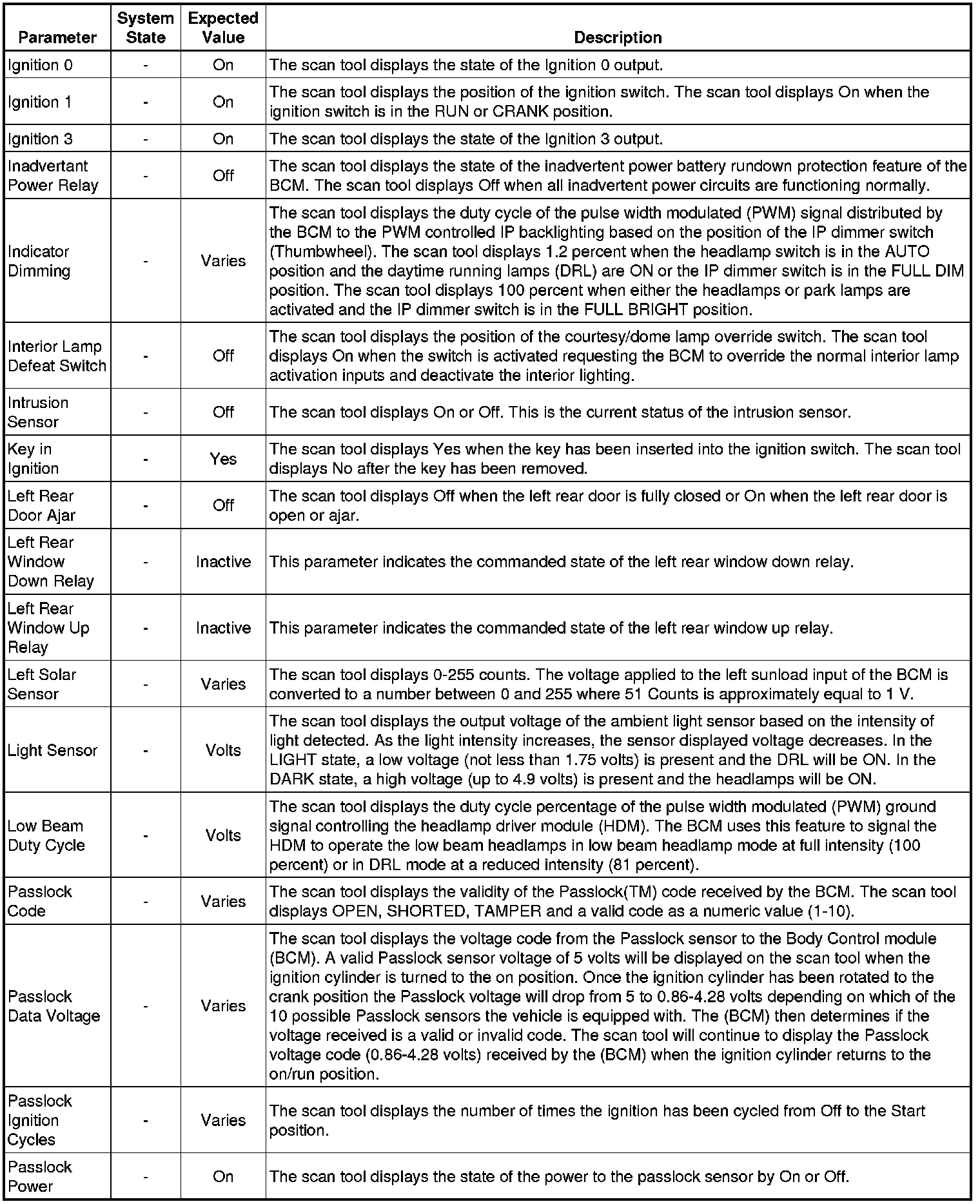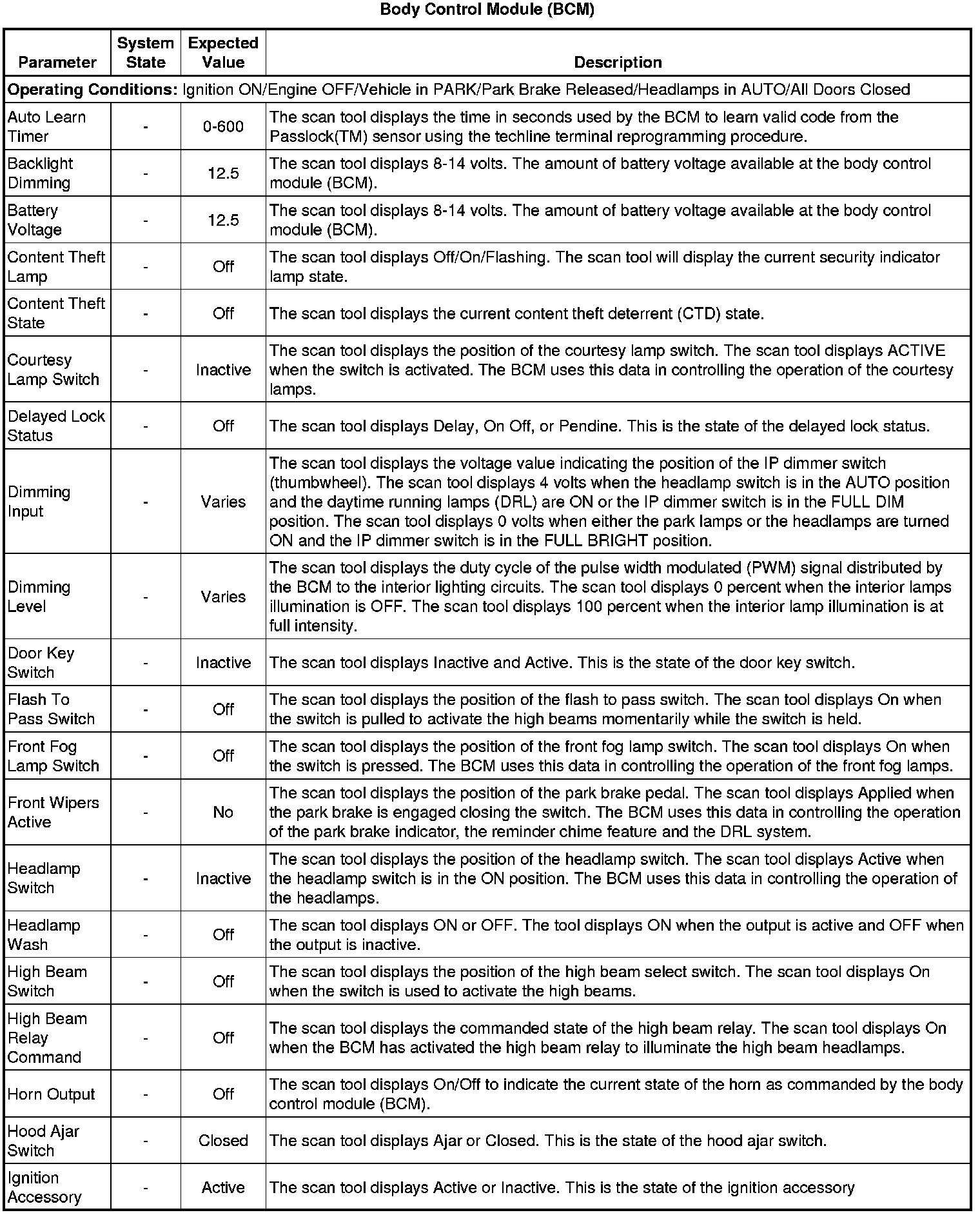 Body Control Module Scan Tool Information