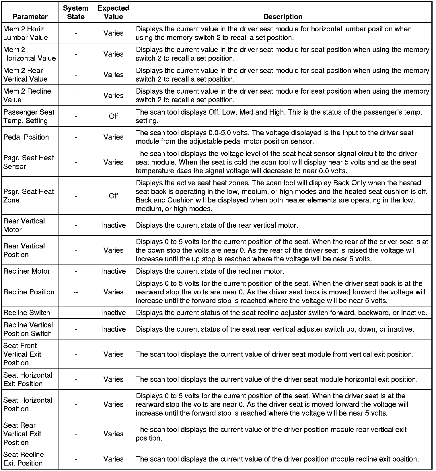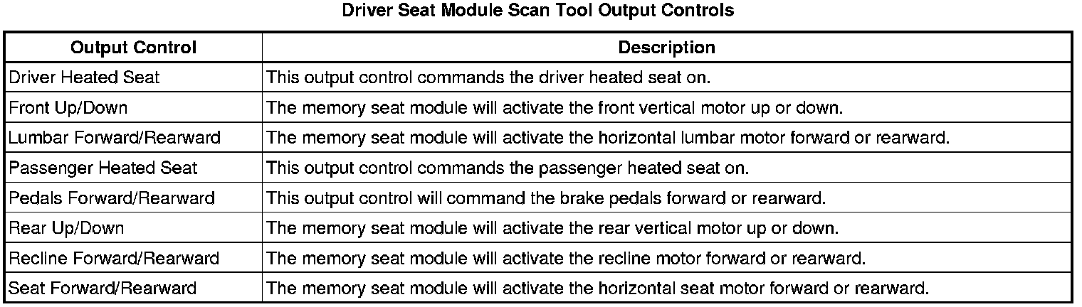 Driver Seat Adjuster Memory Module Scan Tool Information