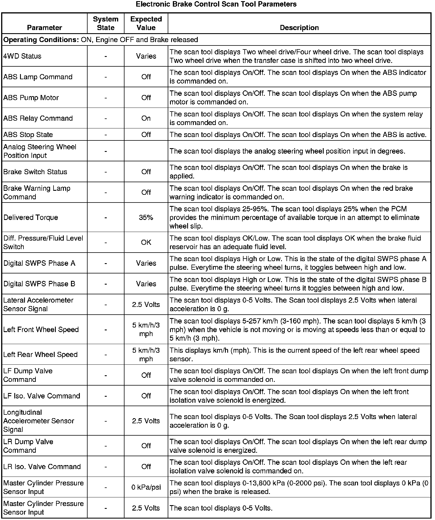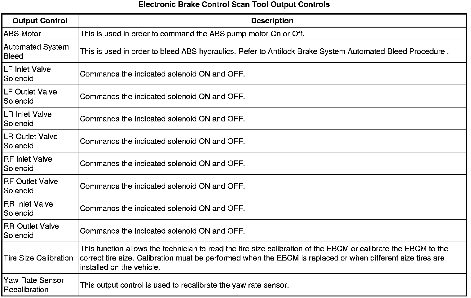 Electronic Brake Control Module Scan Tool Information