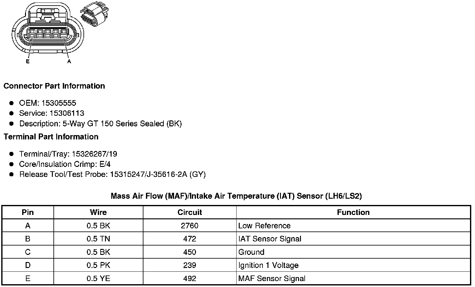 Mass Air Flow (MAF)/Intake Air Temperature (IAT) Sensor (LH6/LS2)