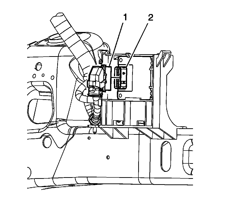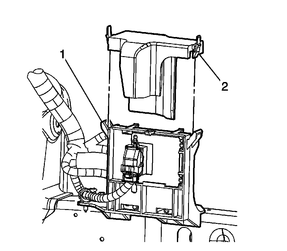 9. Ensure the ECM/TCM cover retainers (2) are fully engaged with the ECM/TCM bracket (1).