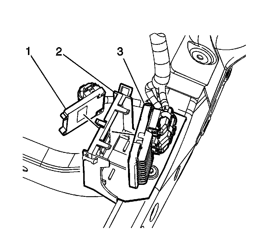 9. Only when replacement of the ECM/TCM bracket (2) is necessary, remove the ECM (3). Refer to Engine Control Module Replacement (Service and Repair).