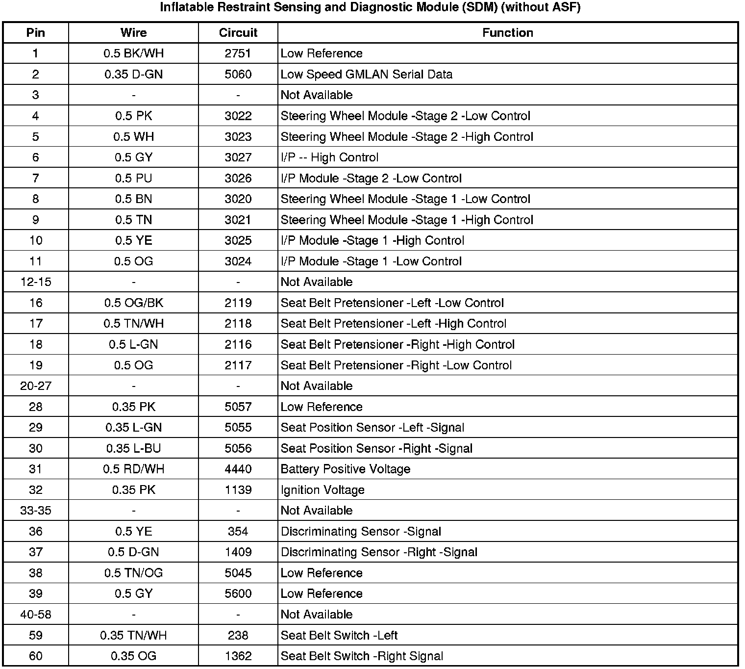 Inflatable Restraint Sensing and Diagnostic Module (SDM) (without ASF)