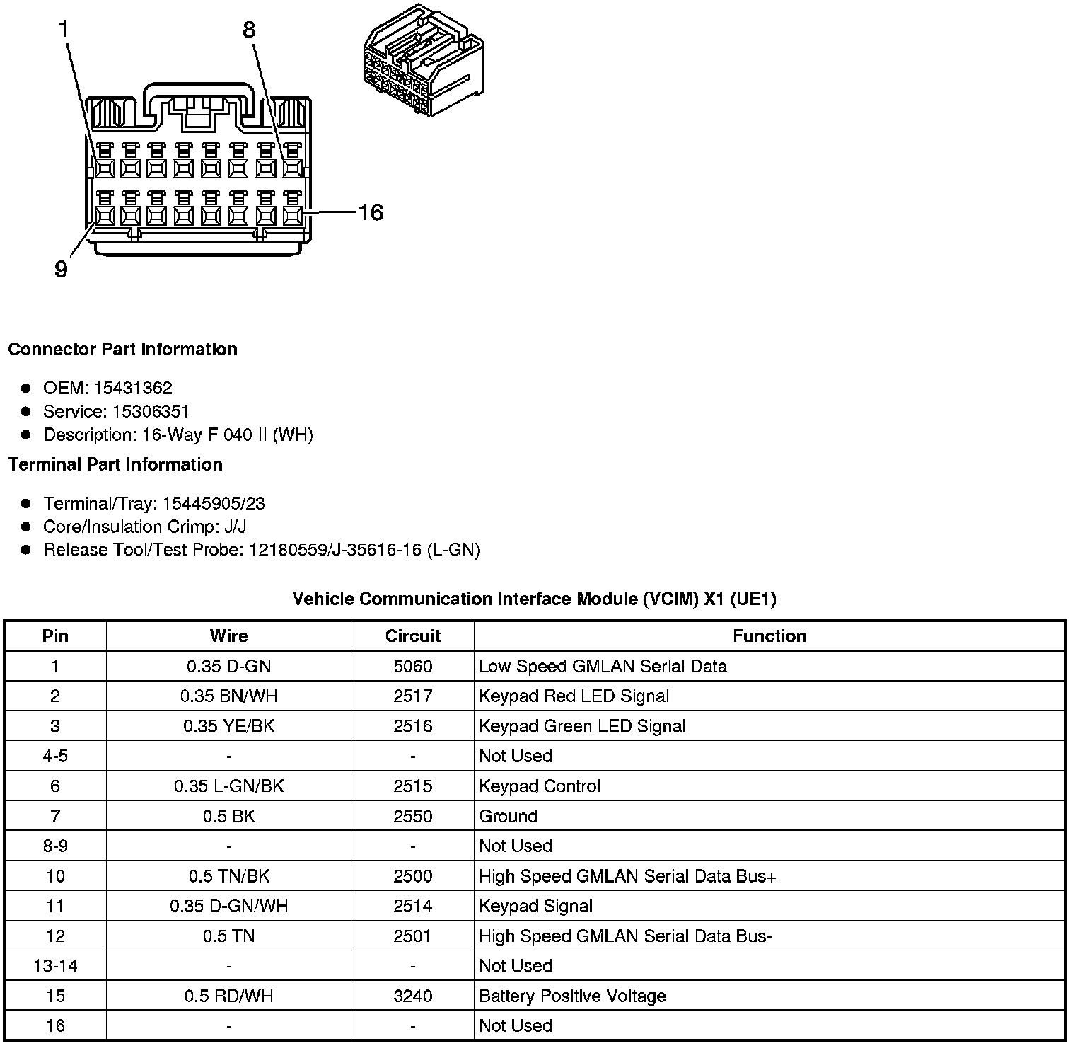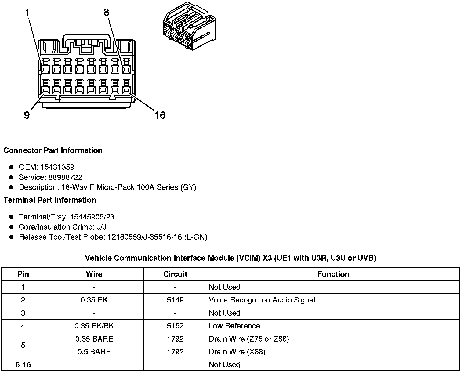 Vehicle Communication Interface Module (VCIM) X3 (UE1 with U3R, U3U or UVB)
