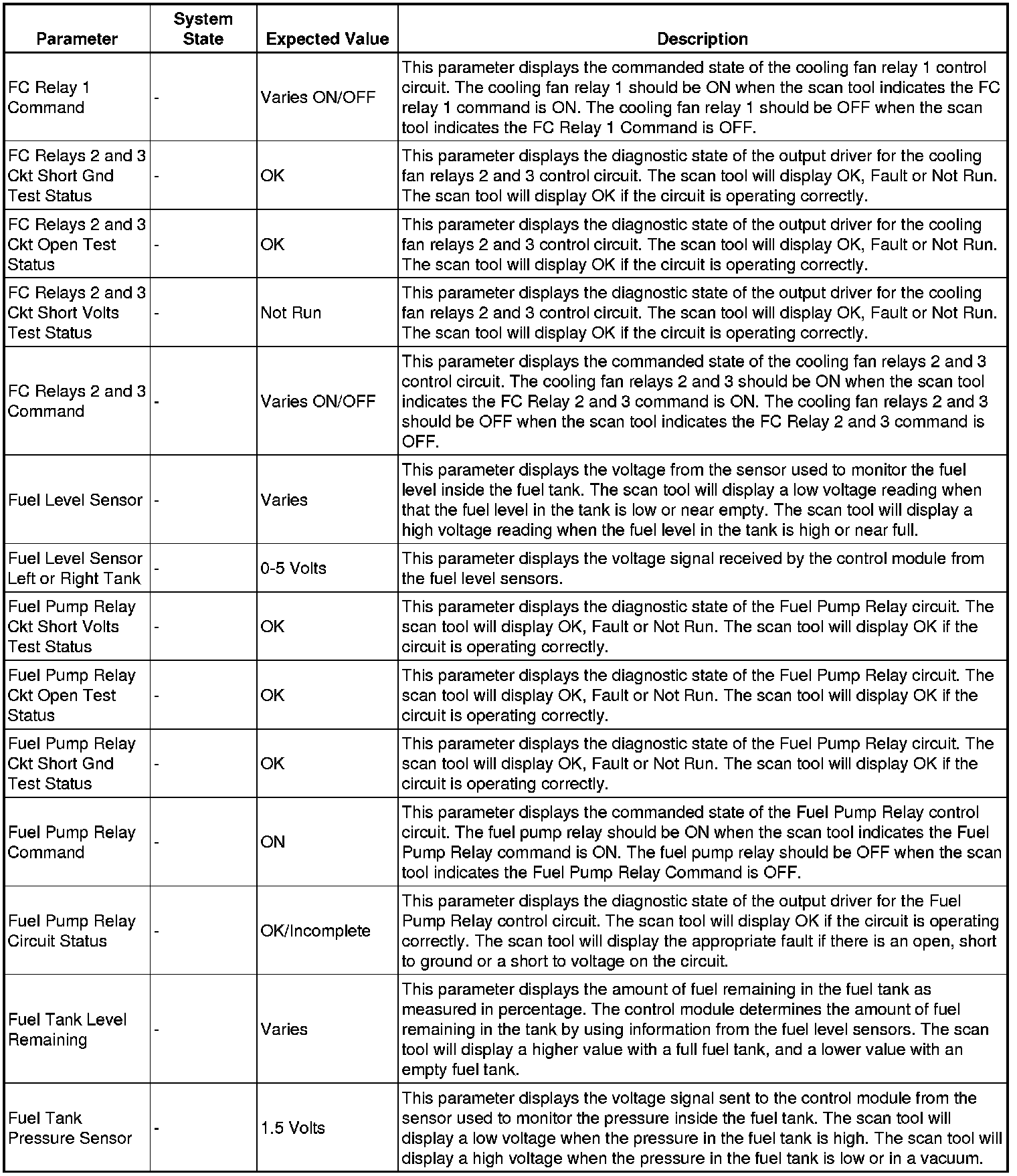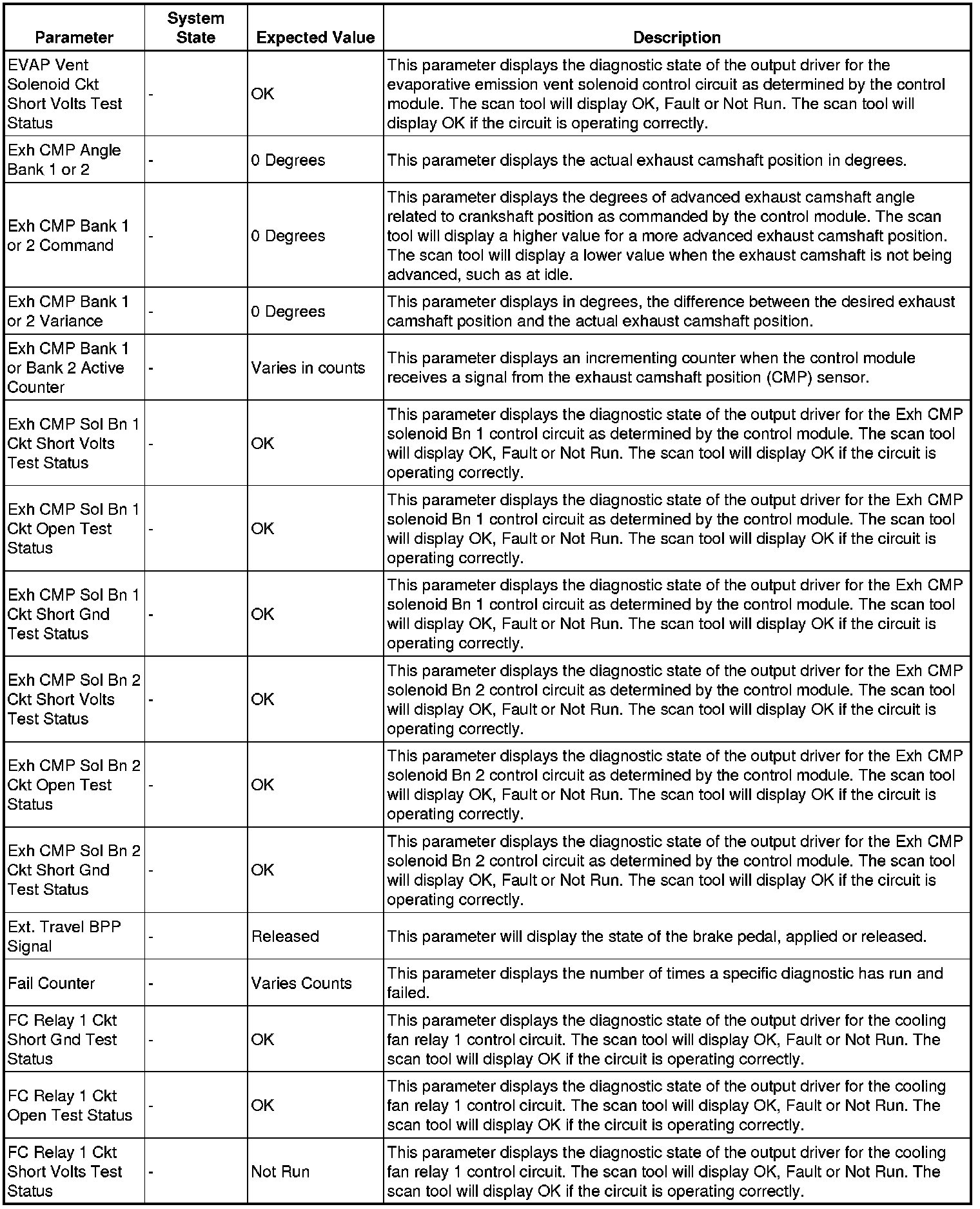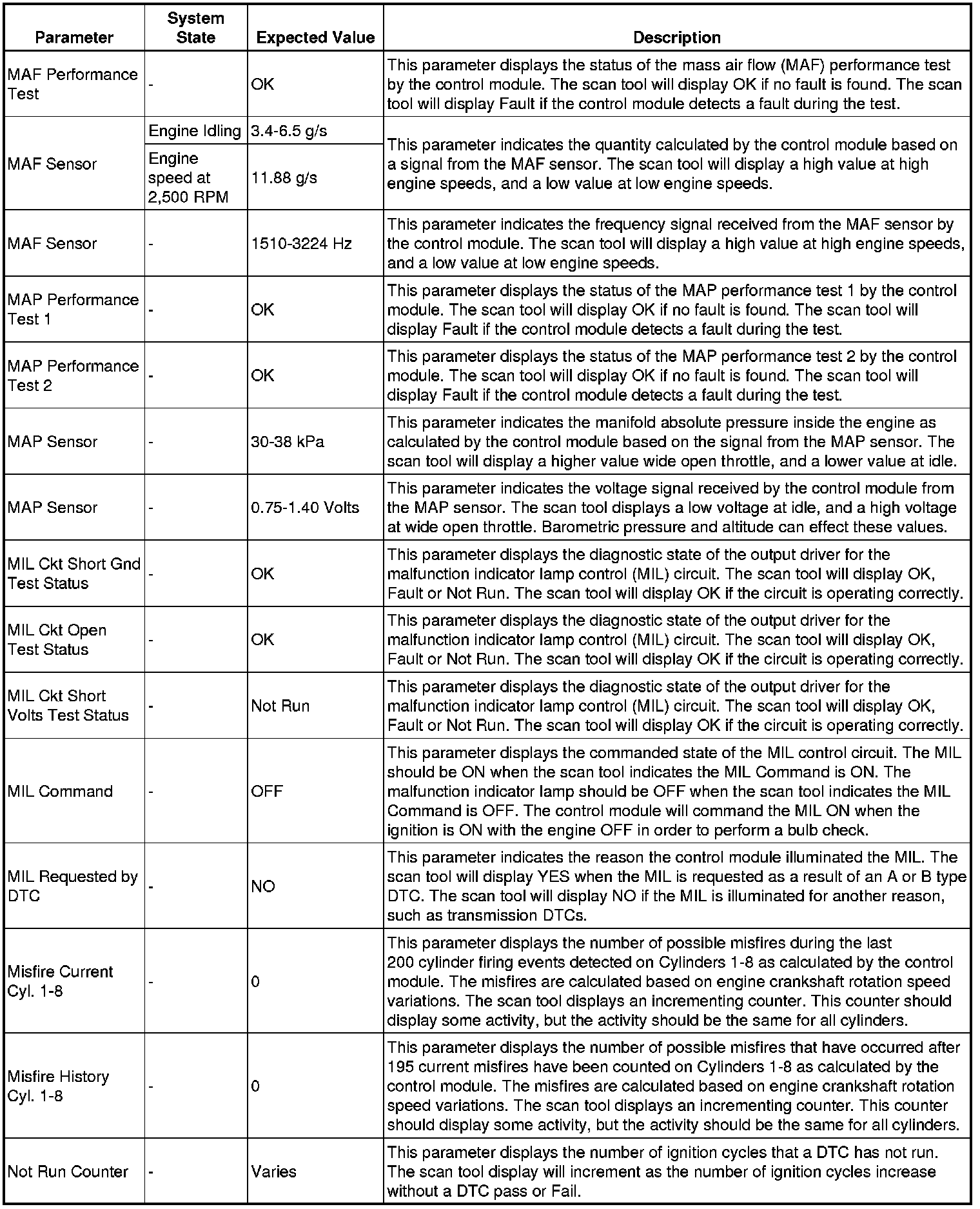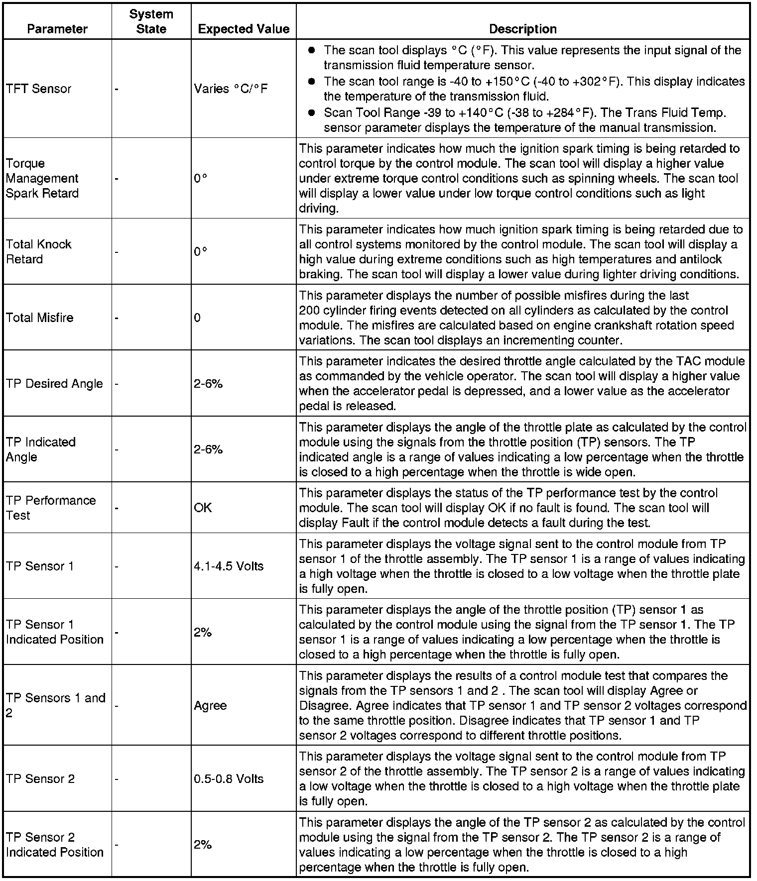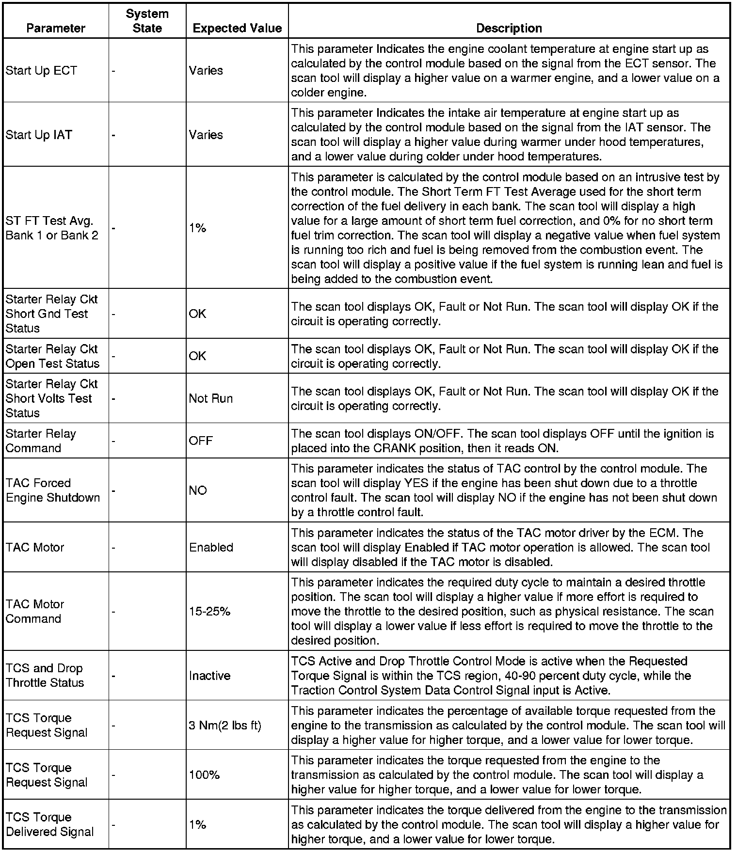 The scan tool values from a properly running engine may be used for comparison with the engine you are diagnosing. The engine scan tool data list represents values that would be seen on a normally running engine.