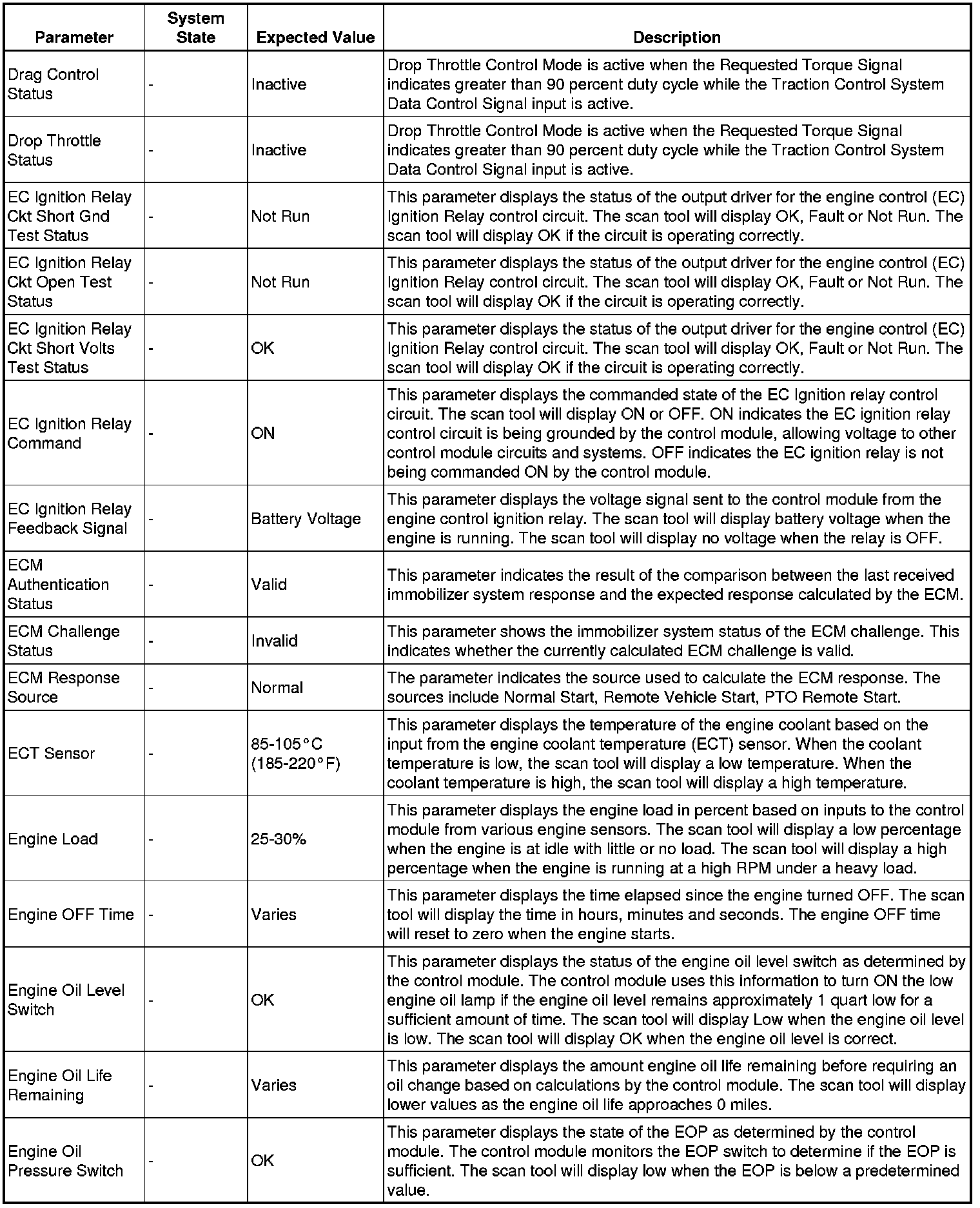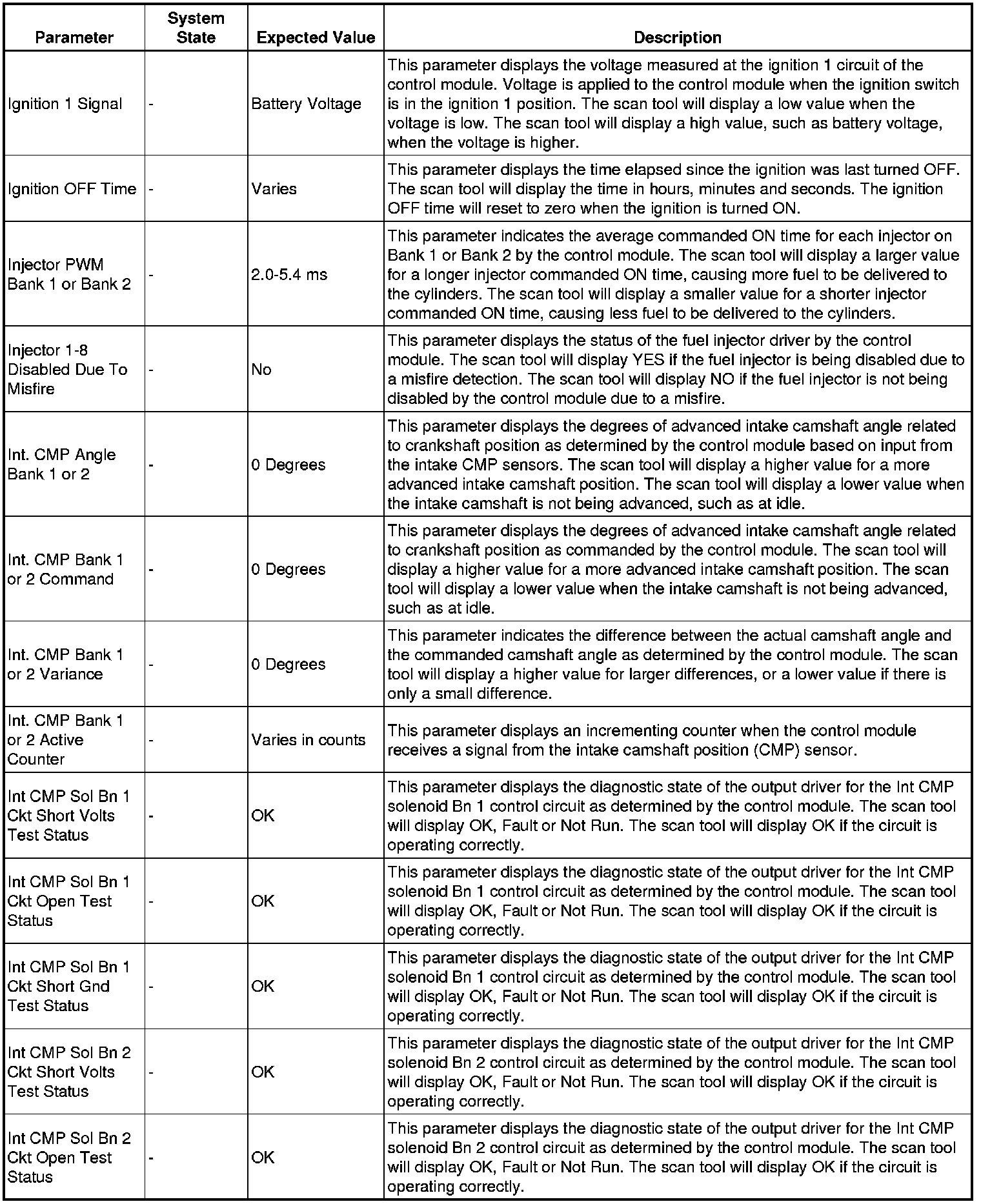 The Engine Control Module Scan Tool Data List contains all engine-related parameters that are available on the scan tool. The list is arranged in alphabetical order. A given parameter may appear in any one of the data lists, and in some cases may appear more than once, or in more than one data list in order to group certain related parameters together.