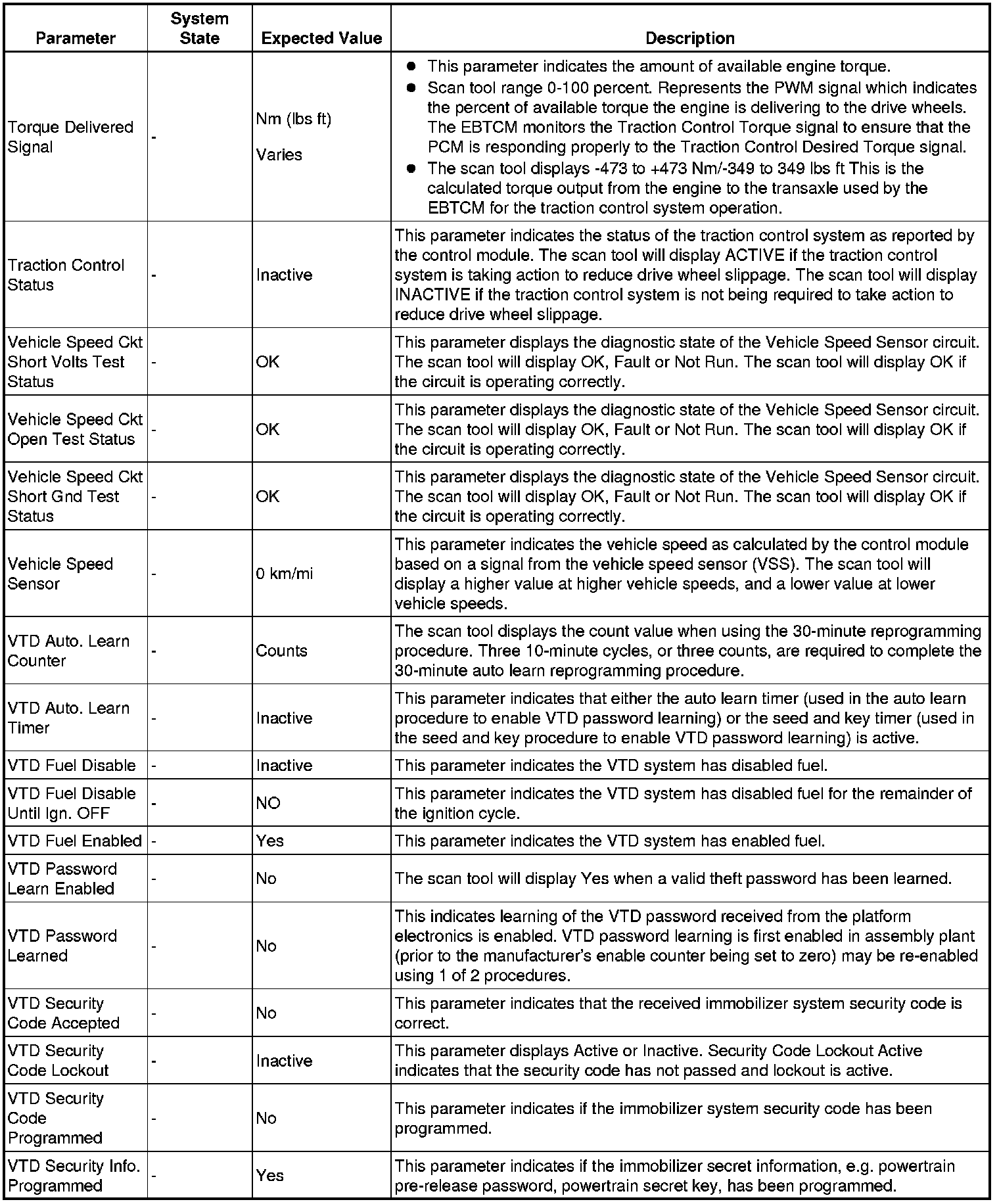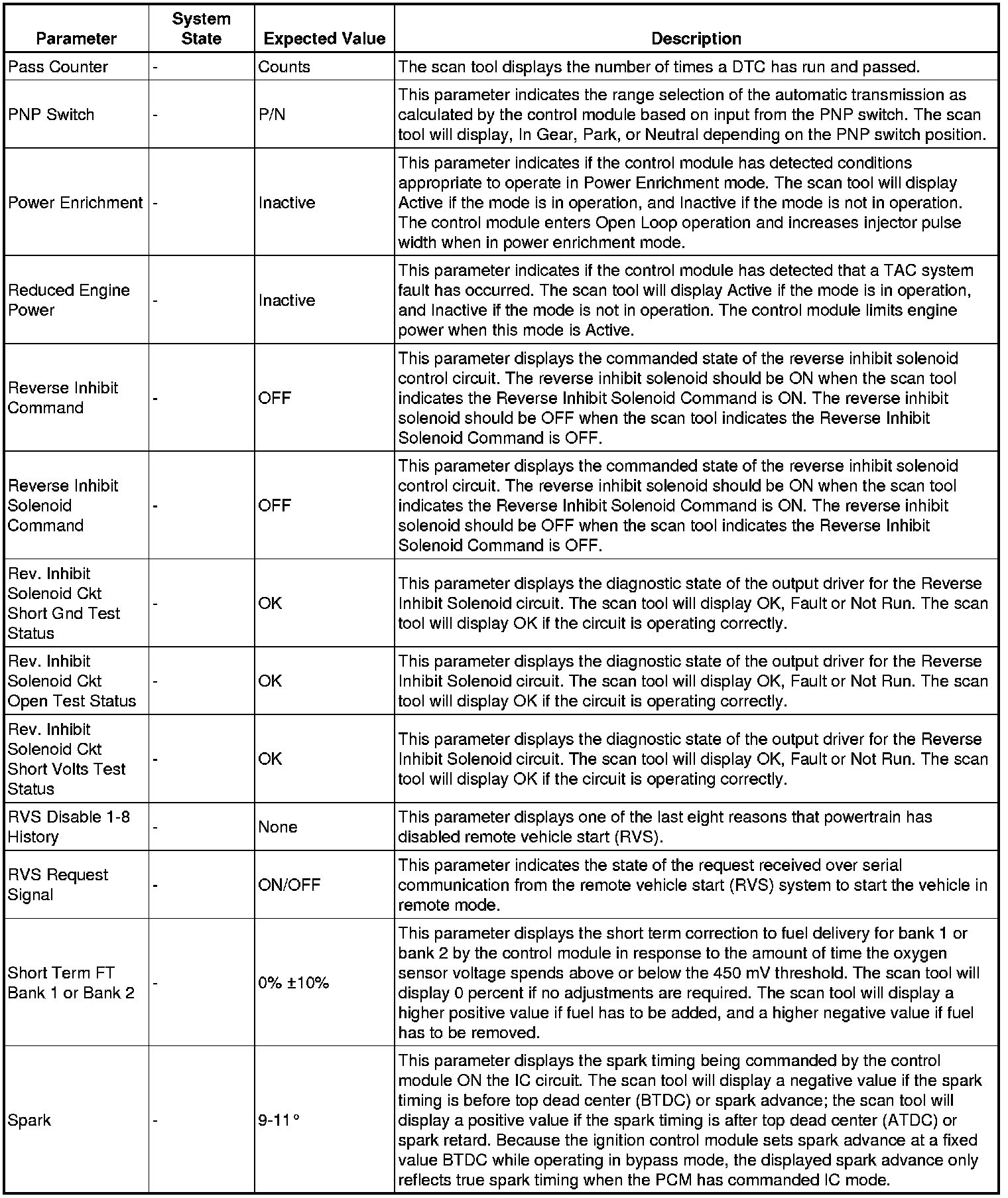 Only the parameters listed below are referenced in this service manual for use in diagnosis.