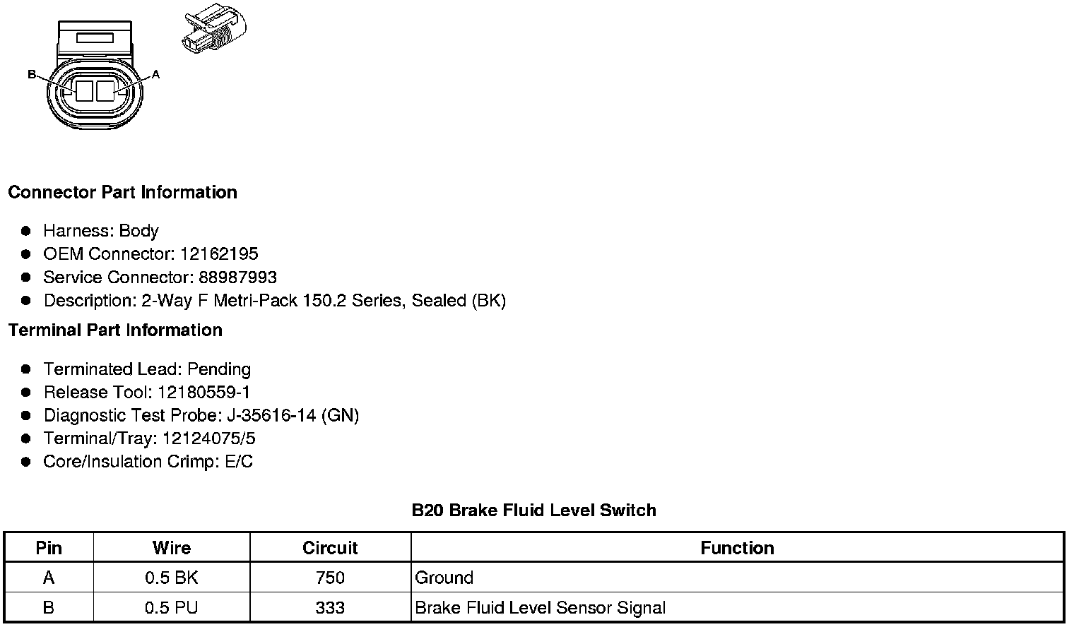 B20 Brake Fluid Level Switch