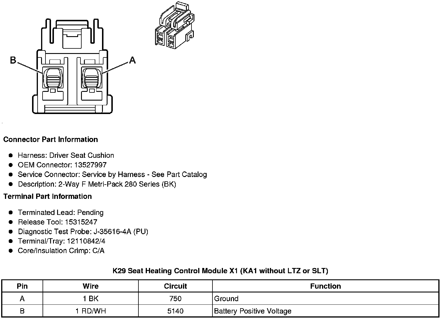 K29 Seat Heating Control Module X2 (KA1 without LTZ or SLT)