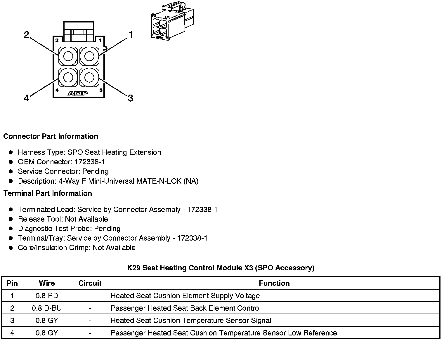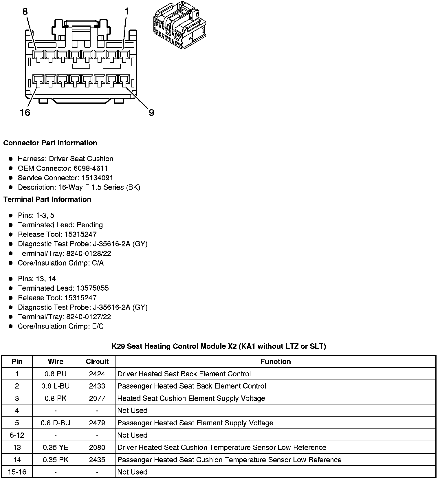 K29 Seat Heating Control Module X3 (KA1 without LTZ or SLT)