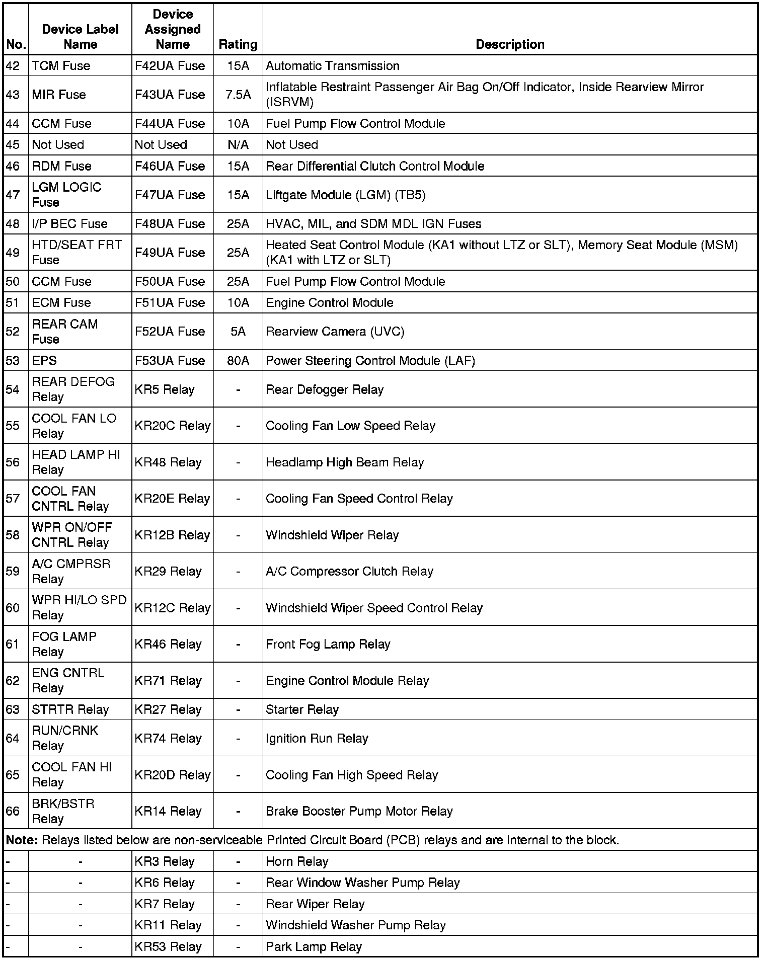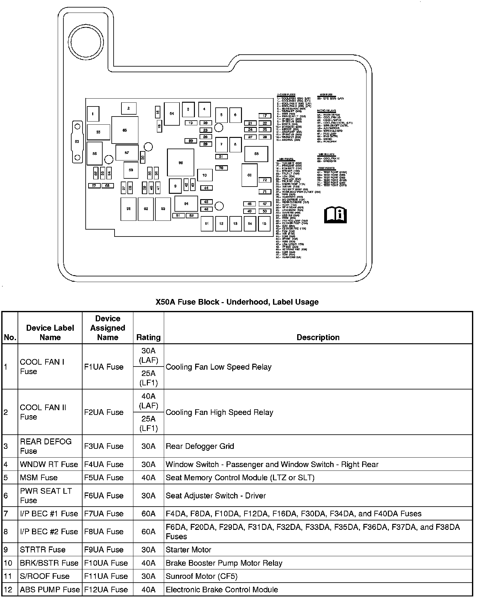 X50A Fuse Block - Underhood, Label