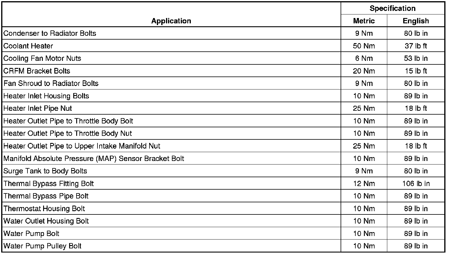 Fastener Tightening Specifications