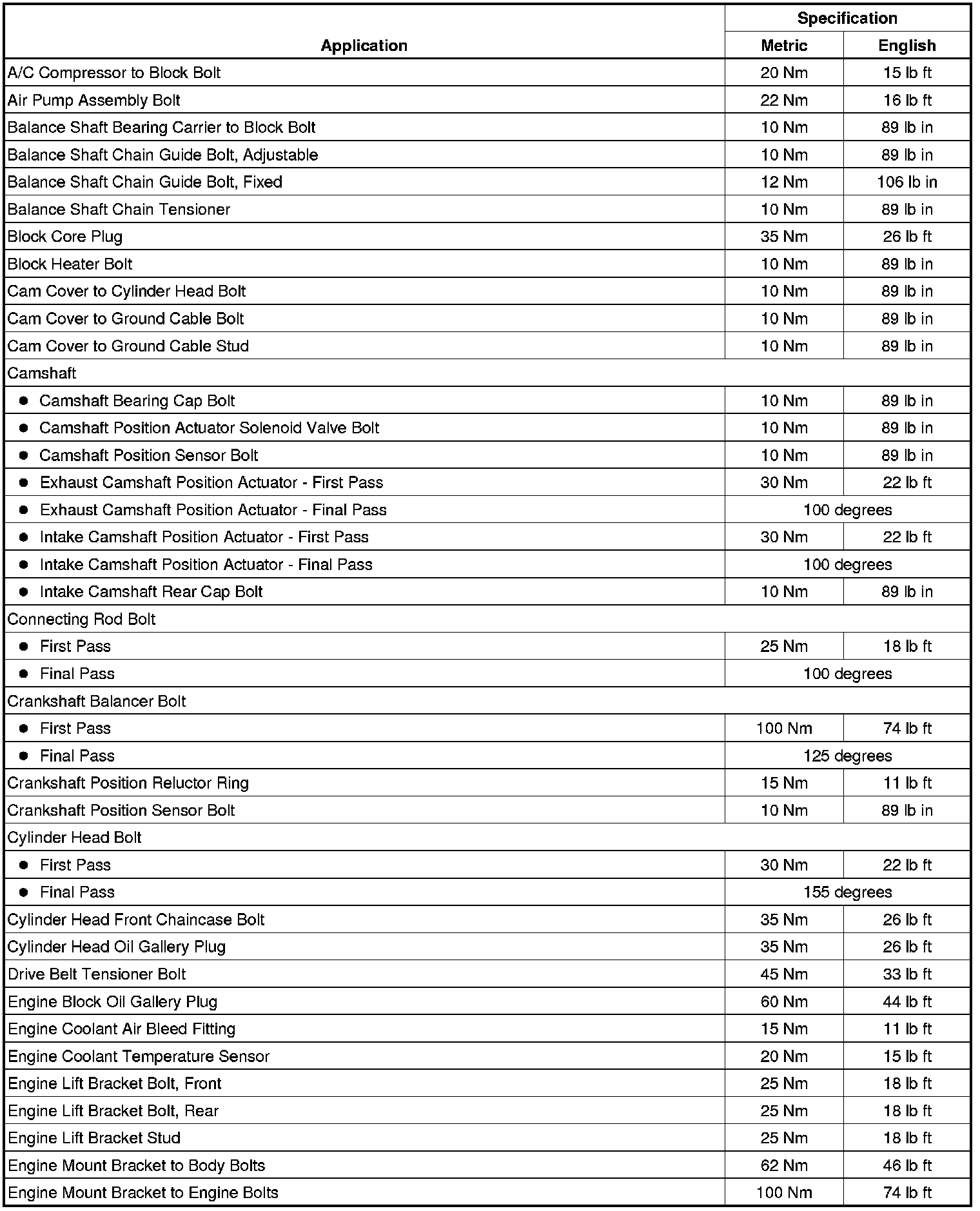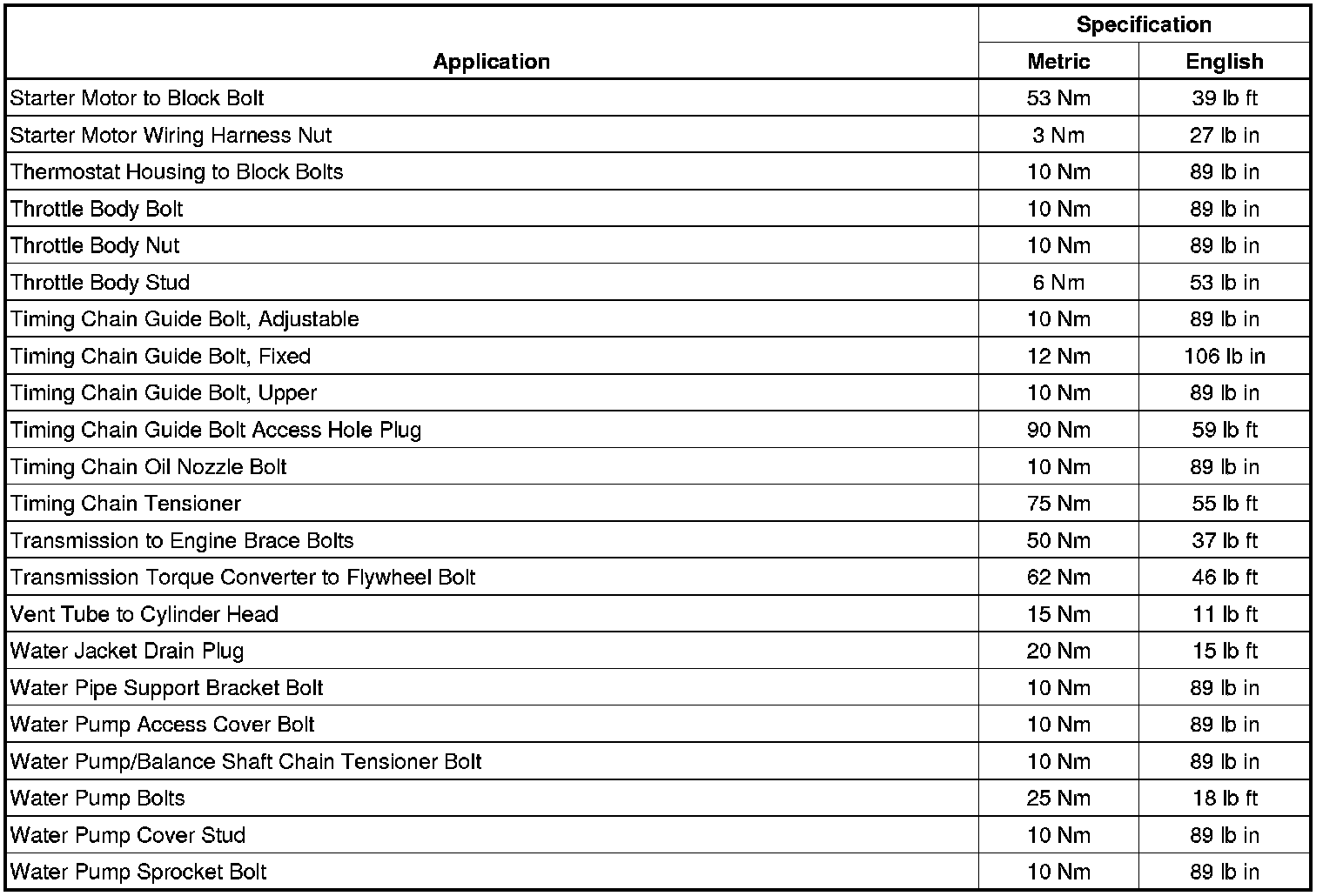 Fastener Tightening Specifications