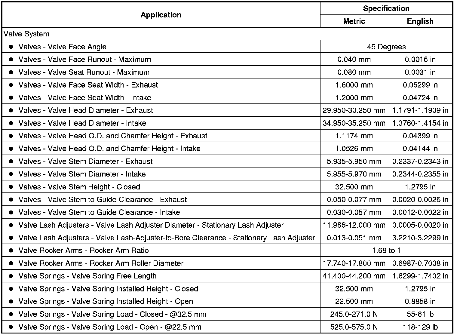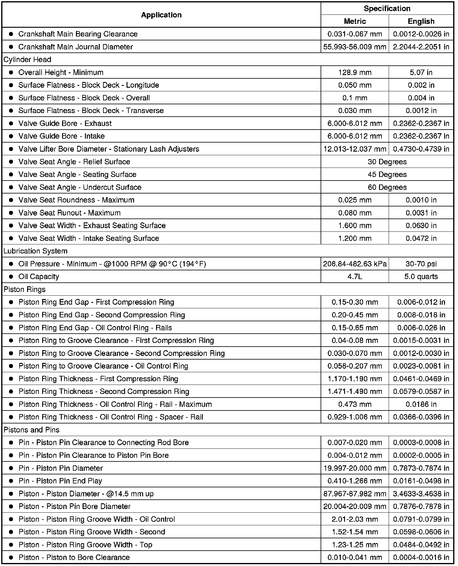 Engine Mechanical Specifications