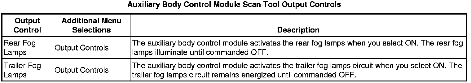 Auxiliary Body Control Module Scan Tool Information