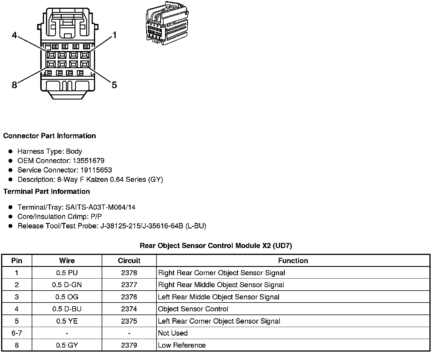 Rear Object Sensor Control Module X2 (UD7)