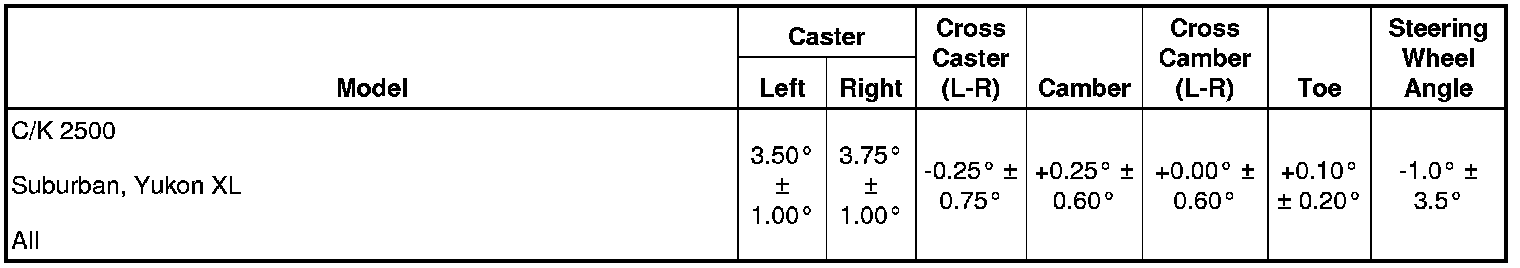 Wheel Alignment Specifications