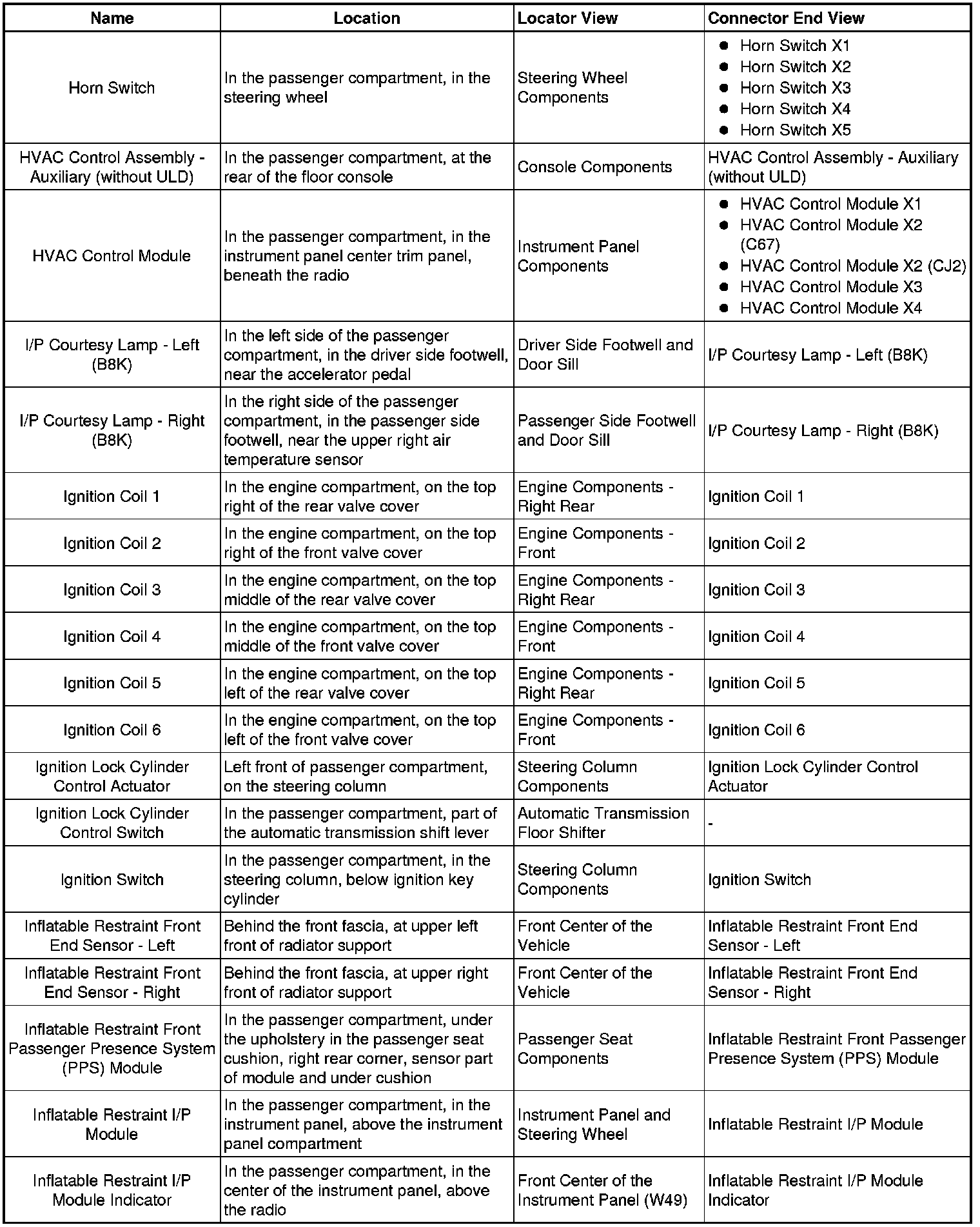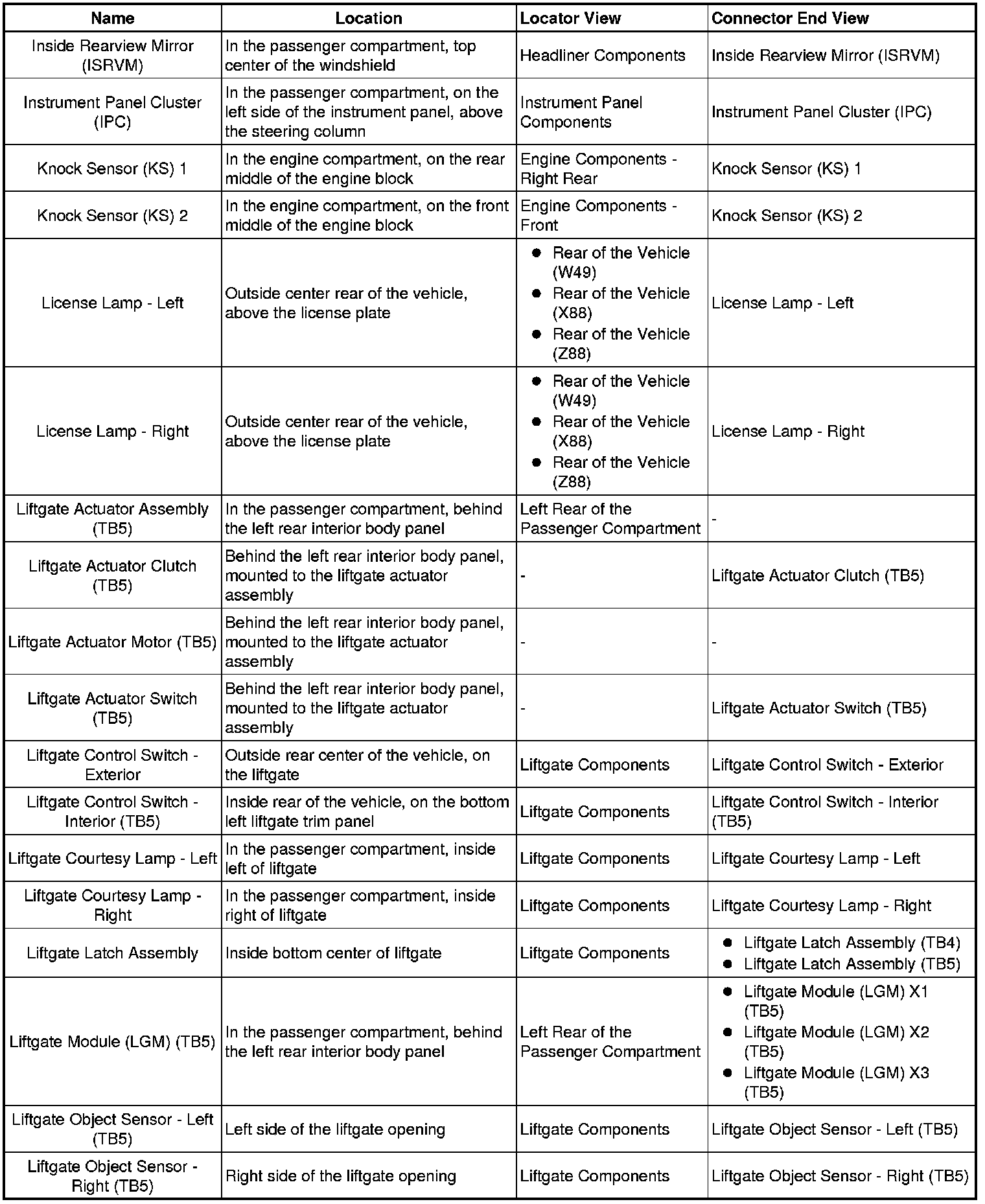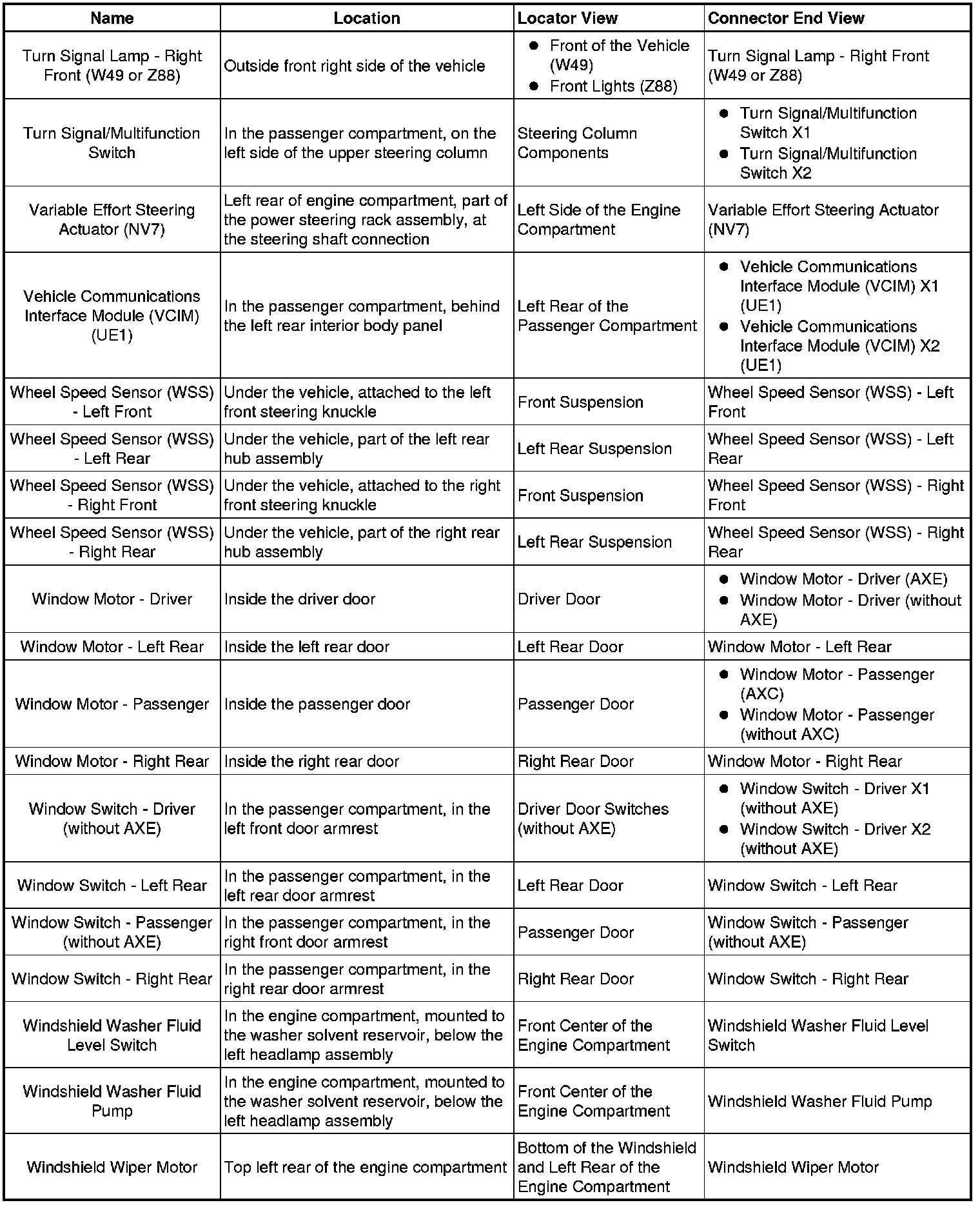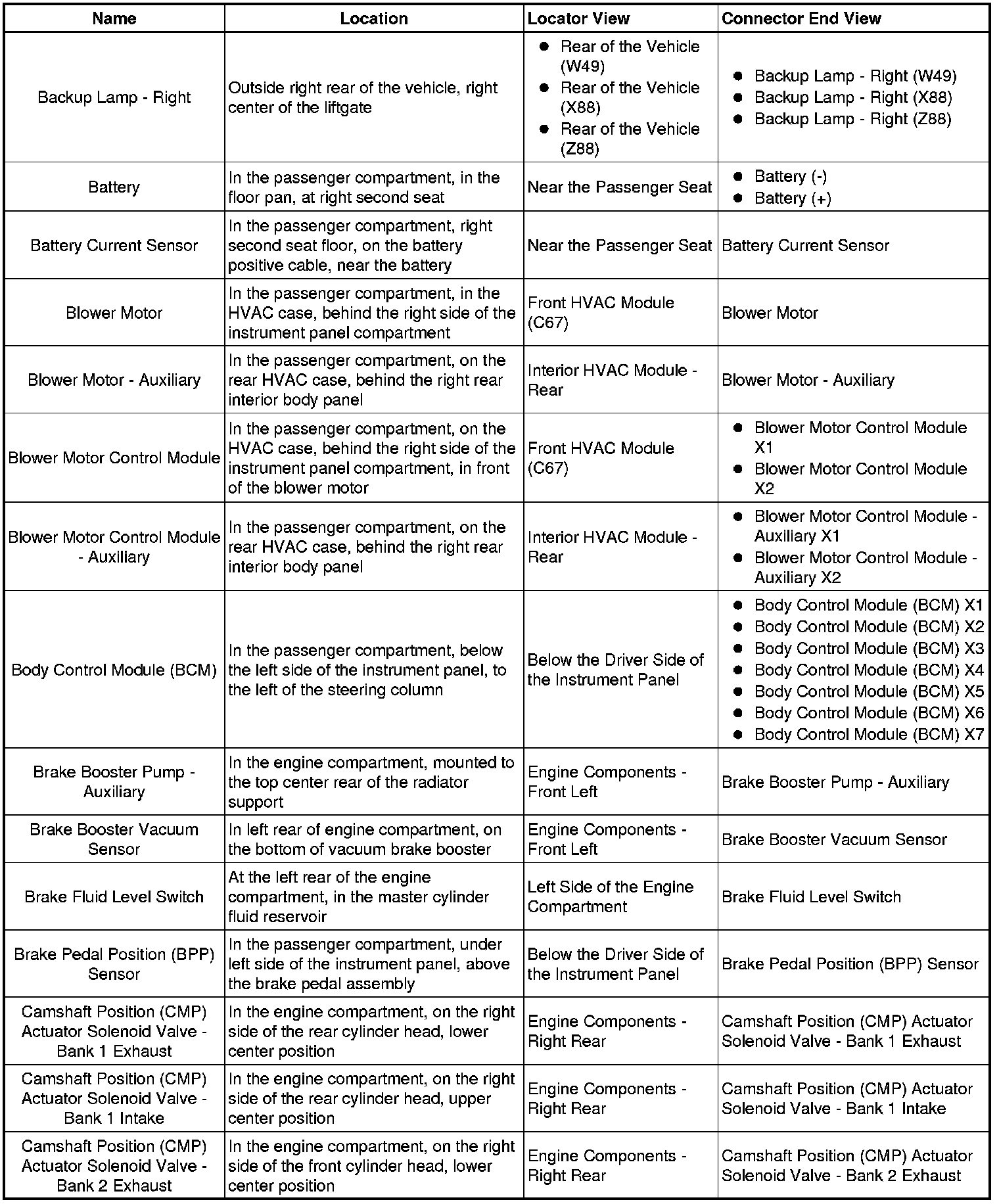 Master Electrical Component List
