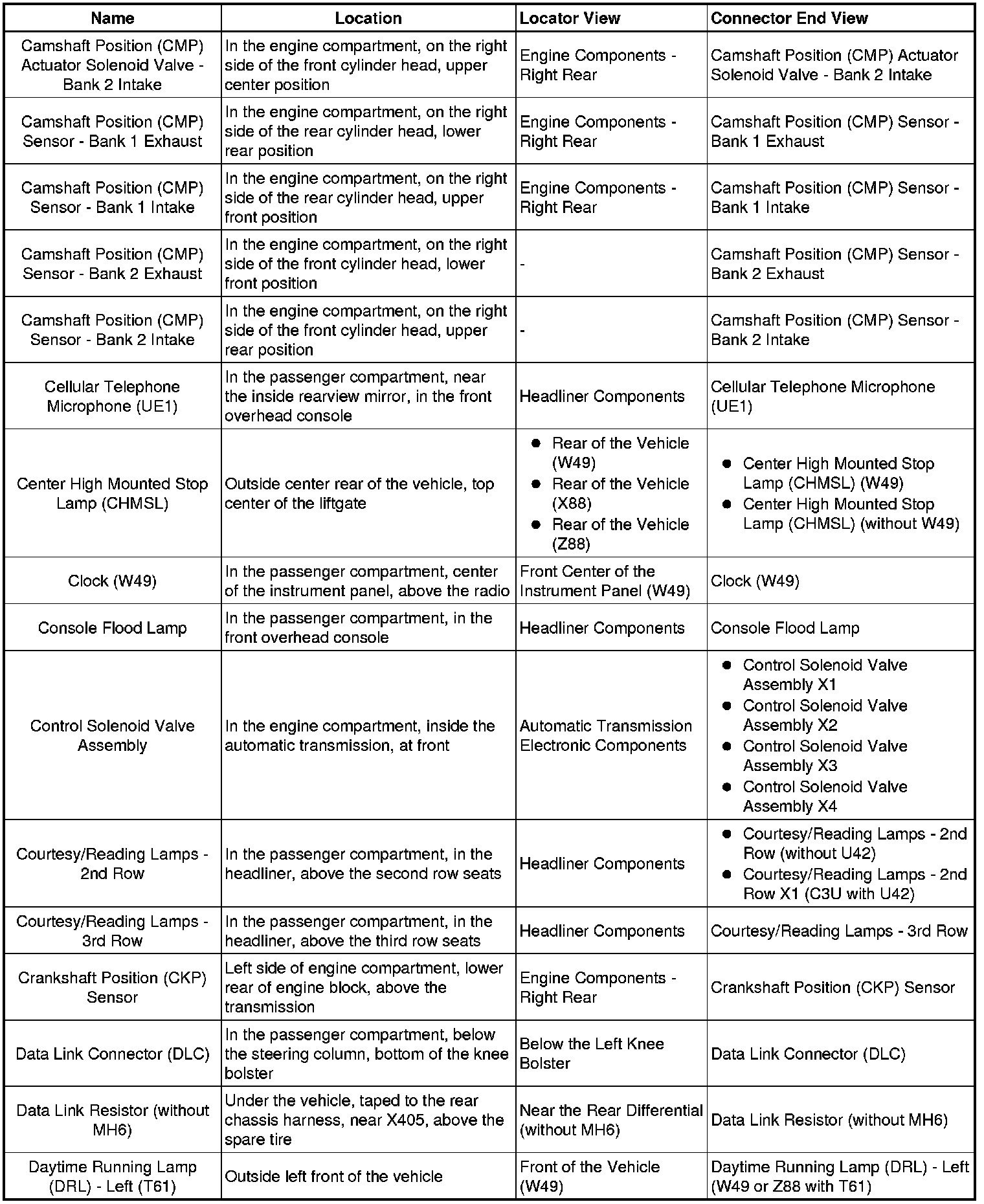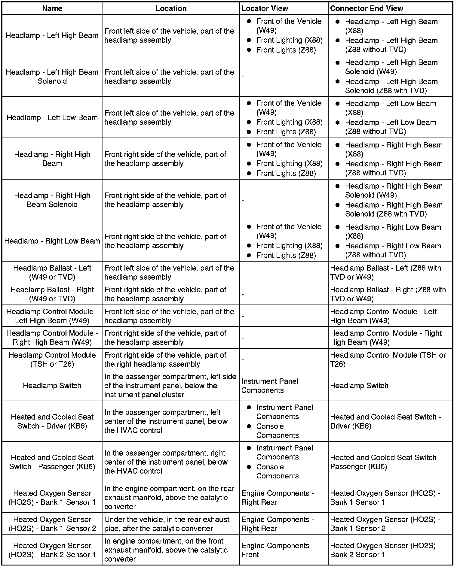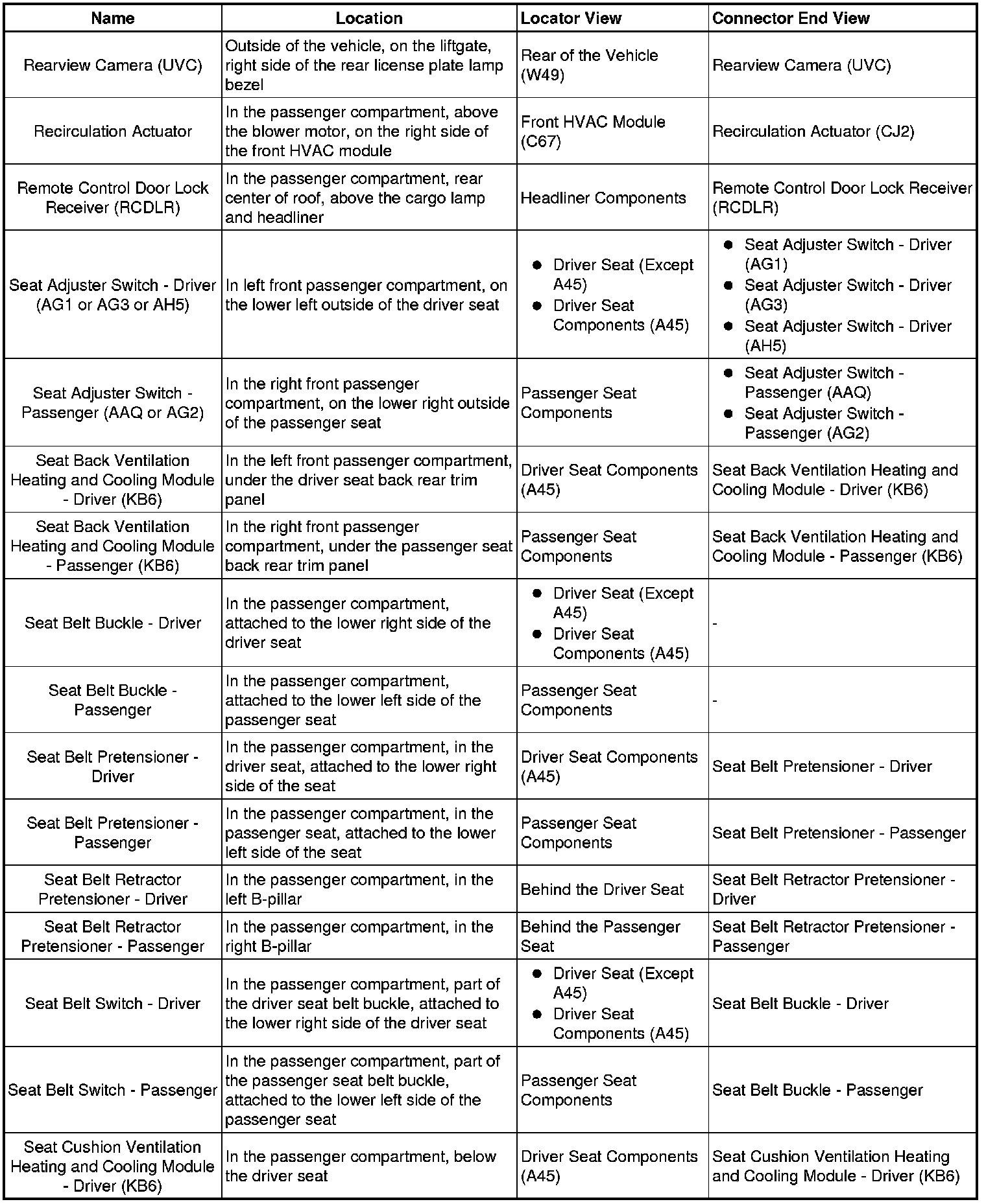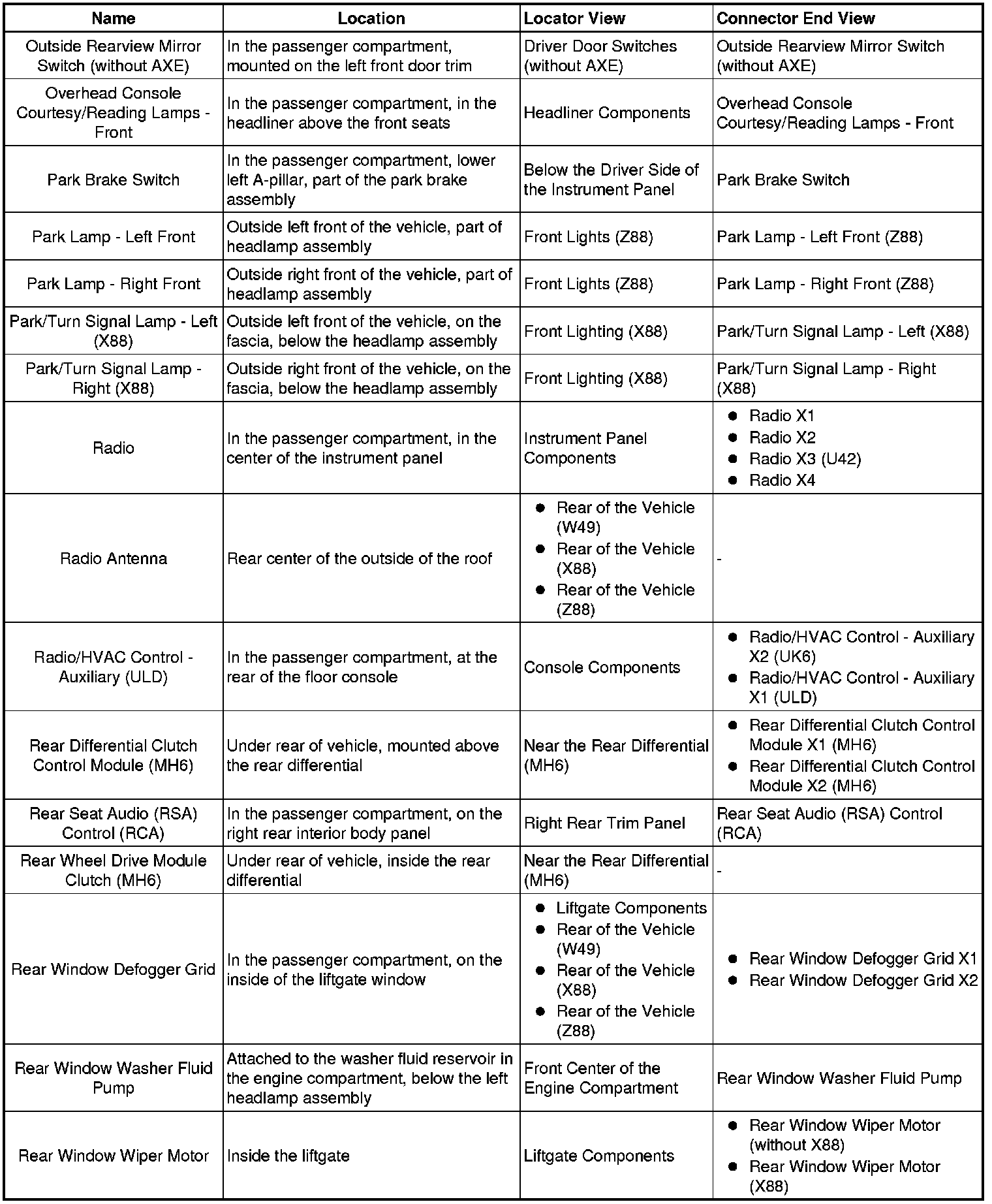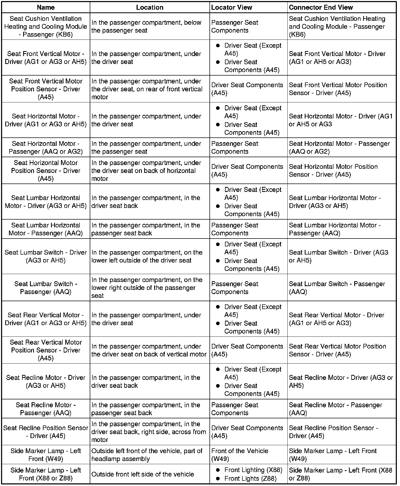 Master Electrical Component List