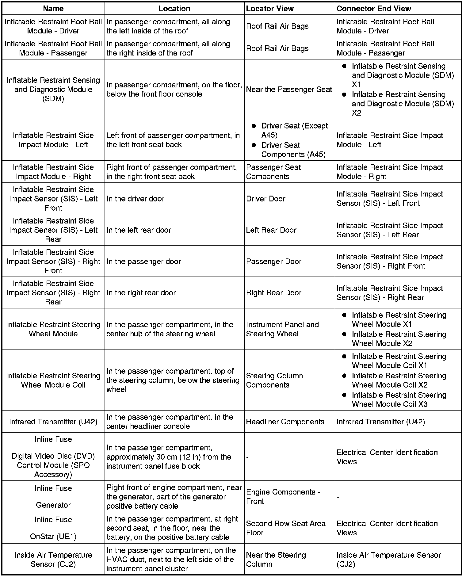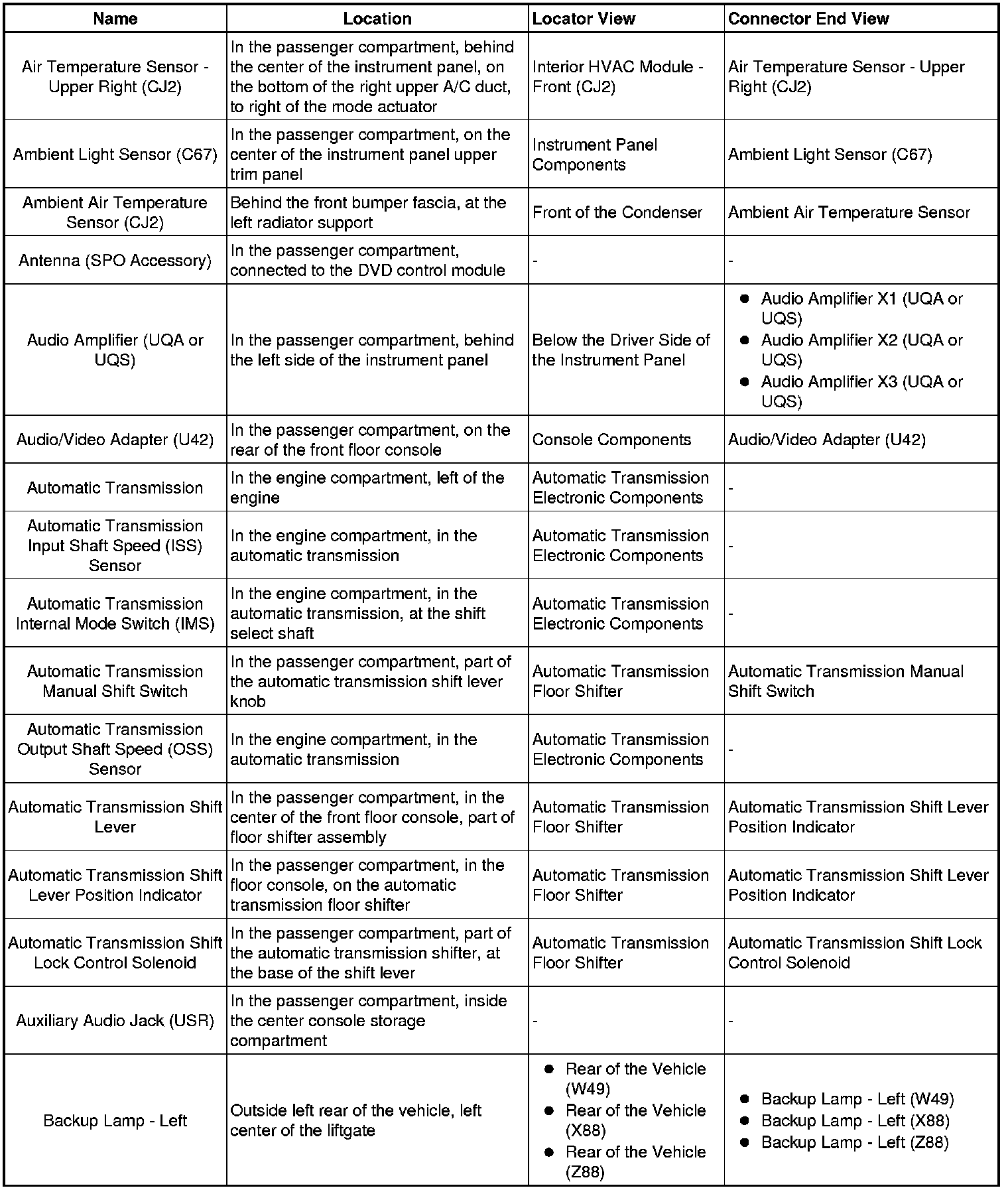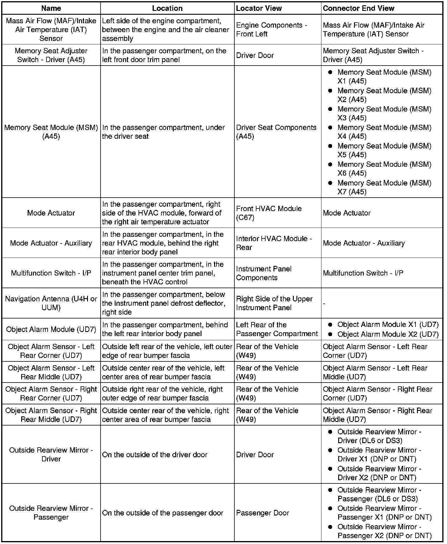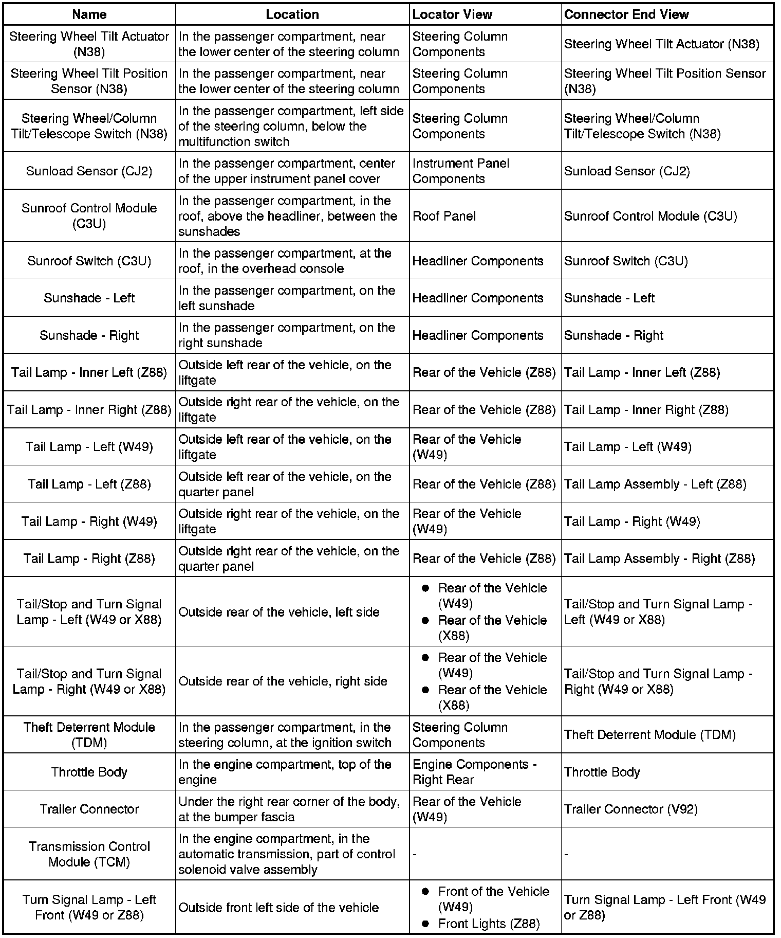 Master Electrical Component List