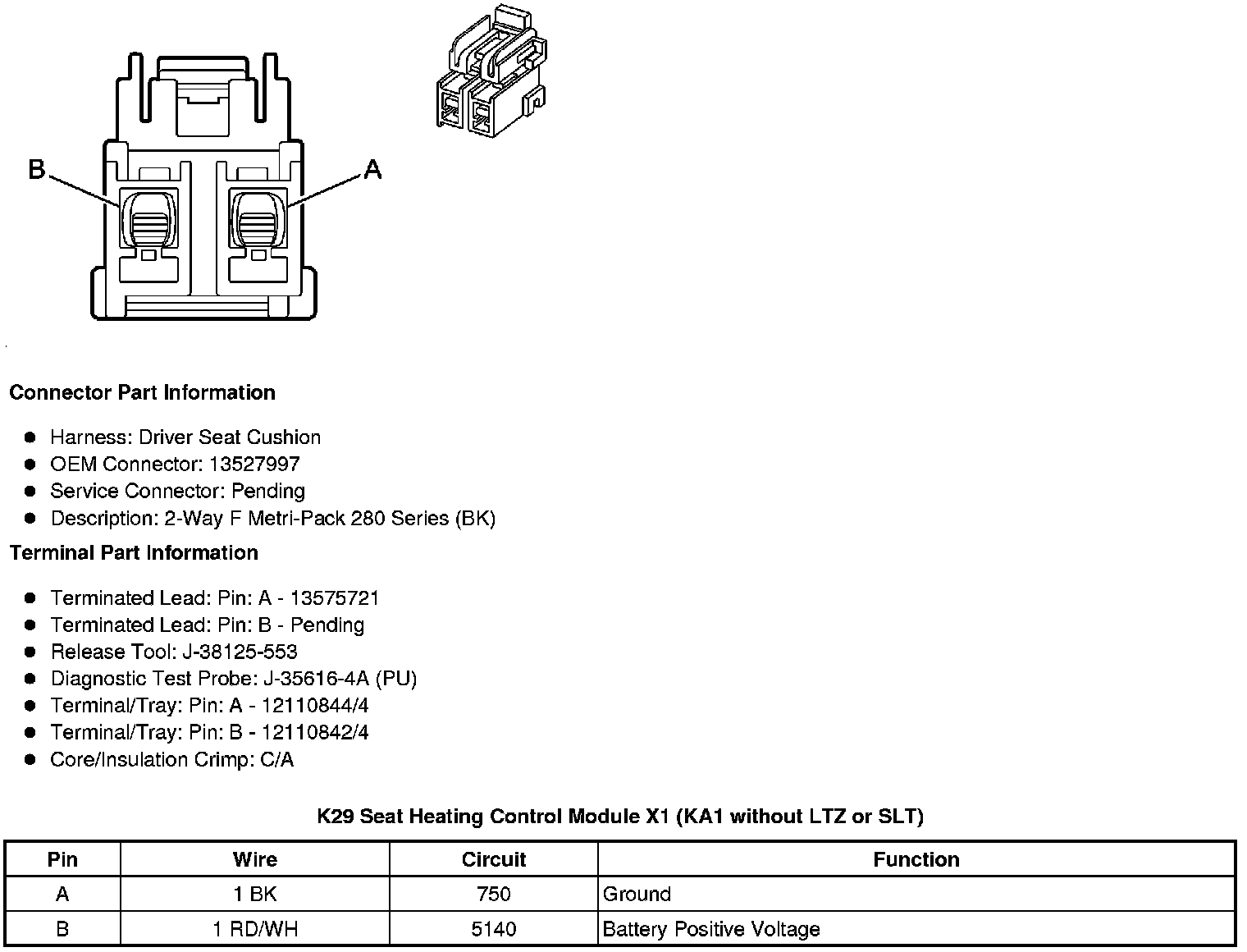 K29 Seat Heating Control Module X2 (KA1 without LTZ or SLT)