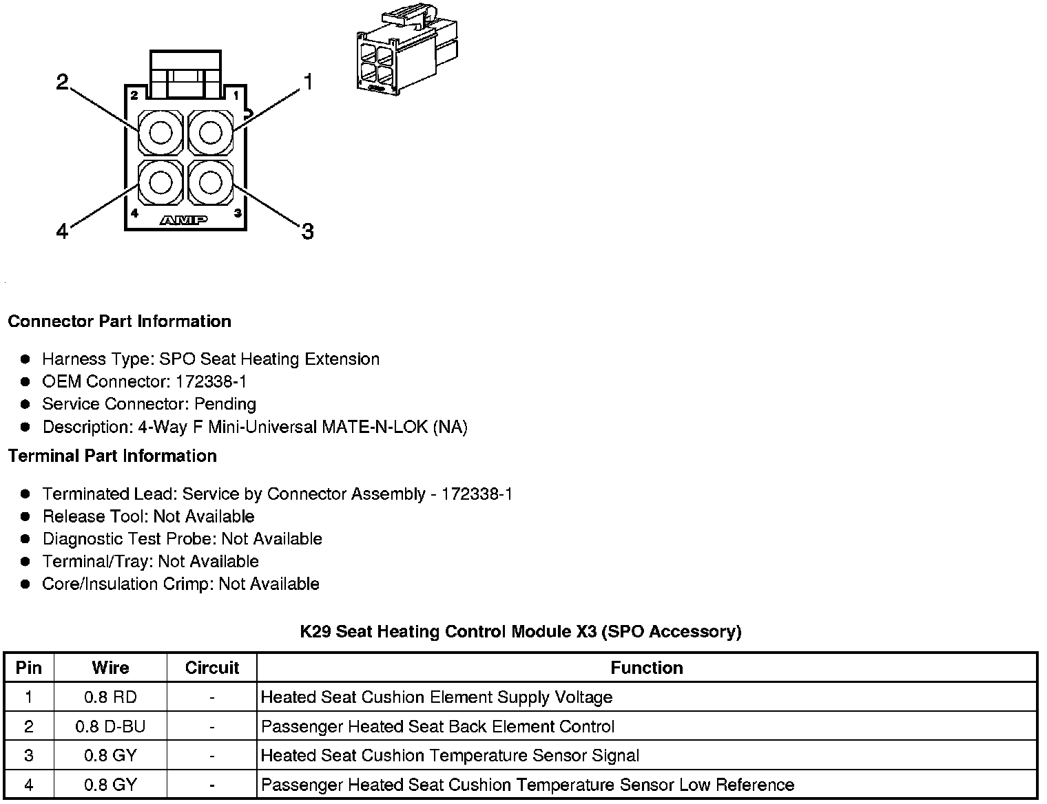 K29 Seat Heating Control Module X3 (KA1 without LTZ or SLT)