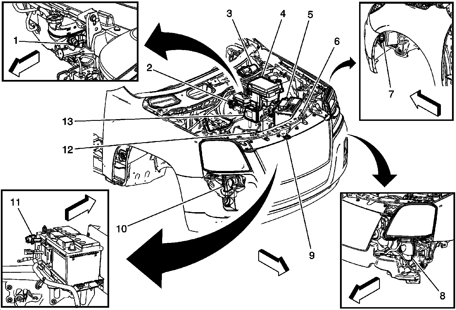 Front of Vehicle/Engine Compartment Component Views