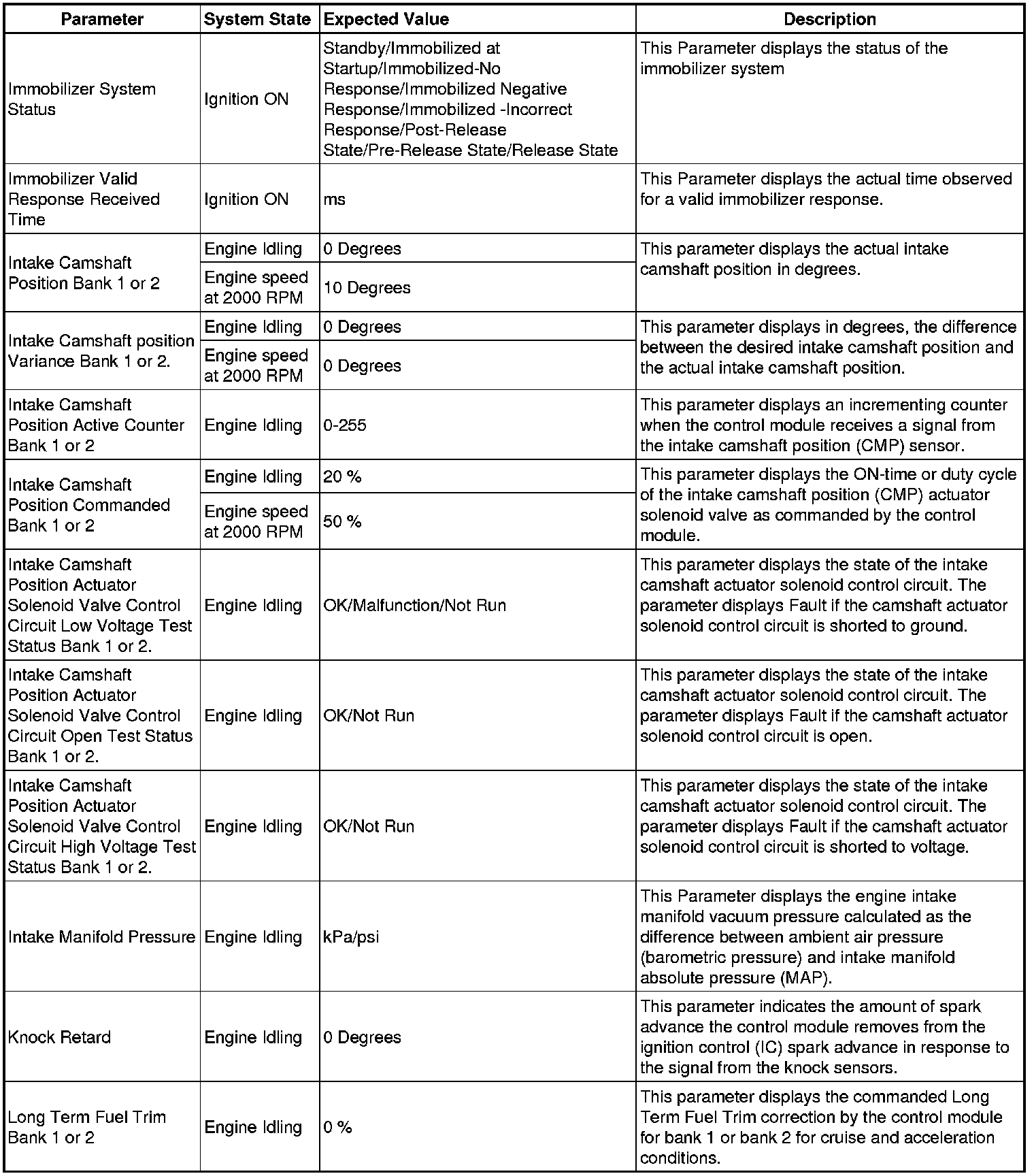 The Engine Control Module Scan Tool Data List contains all engine-related parameters that are available on the scan tool. The list is arranged in alphabetical order. A given parameter may appear in any one of the data lists, and in some cases may appear more than once, or in more than one data list in order to group certain related parameters together.