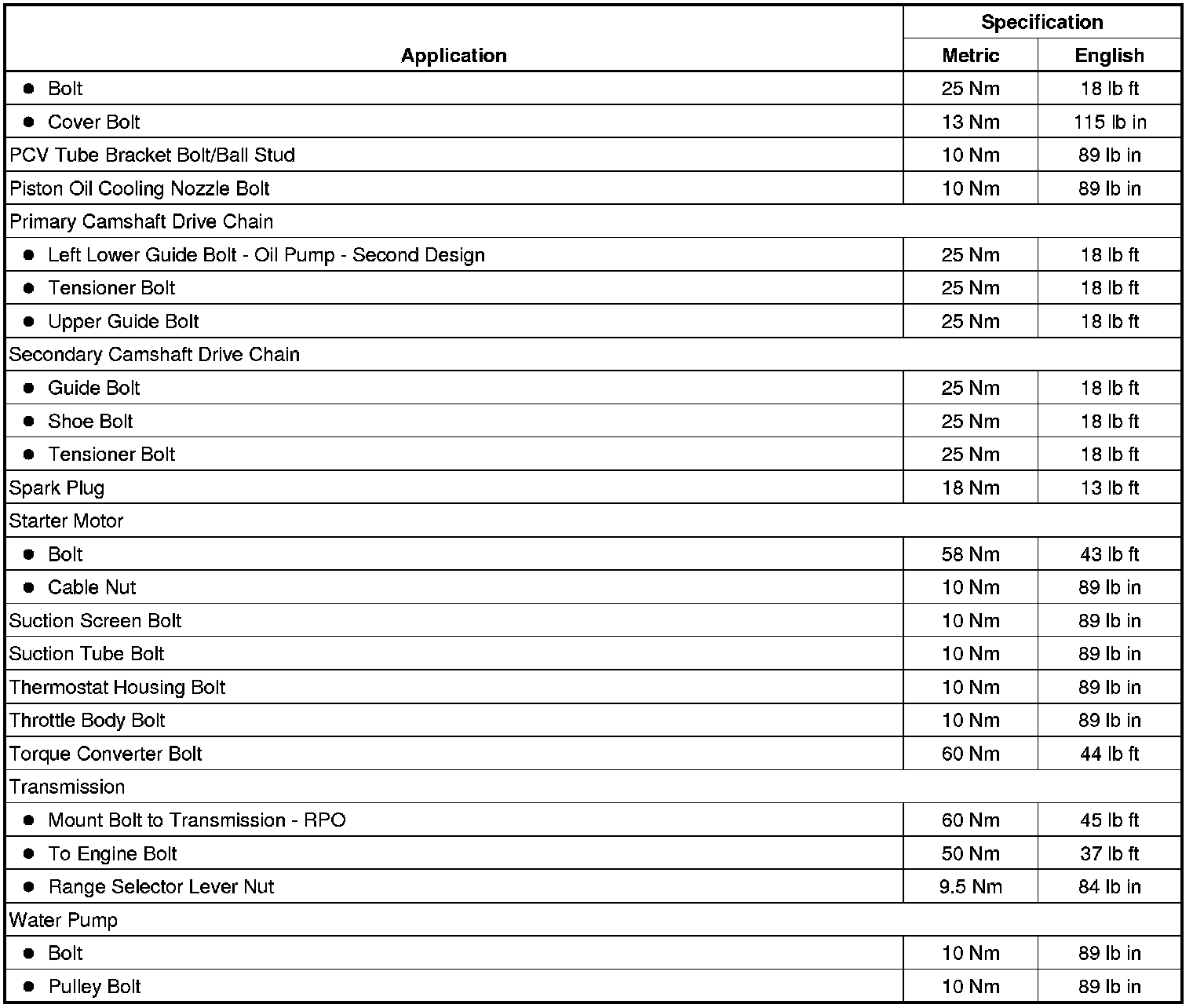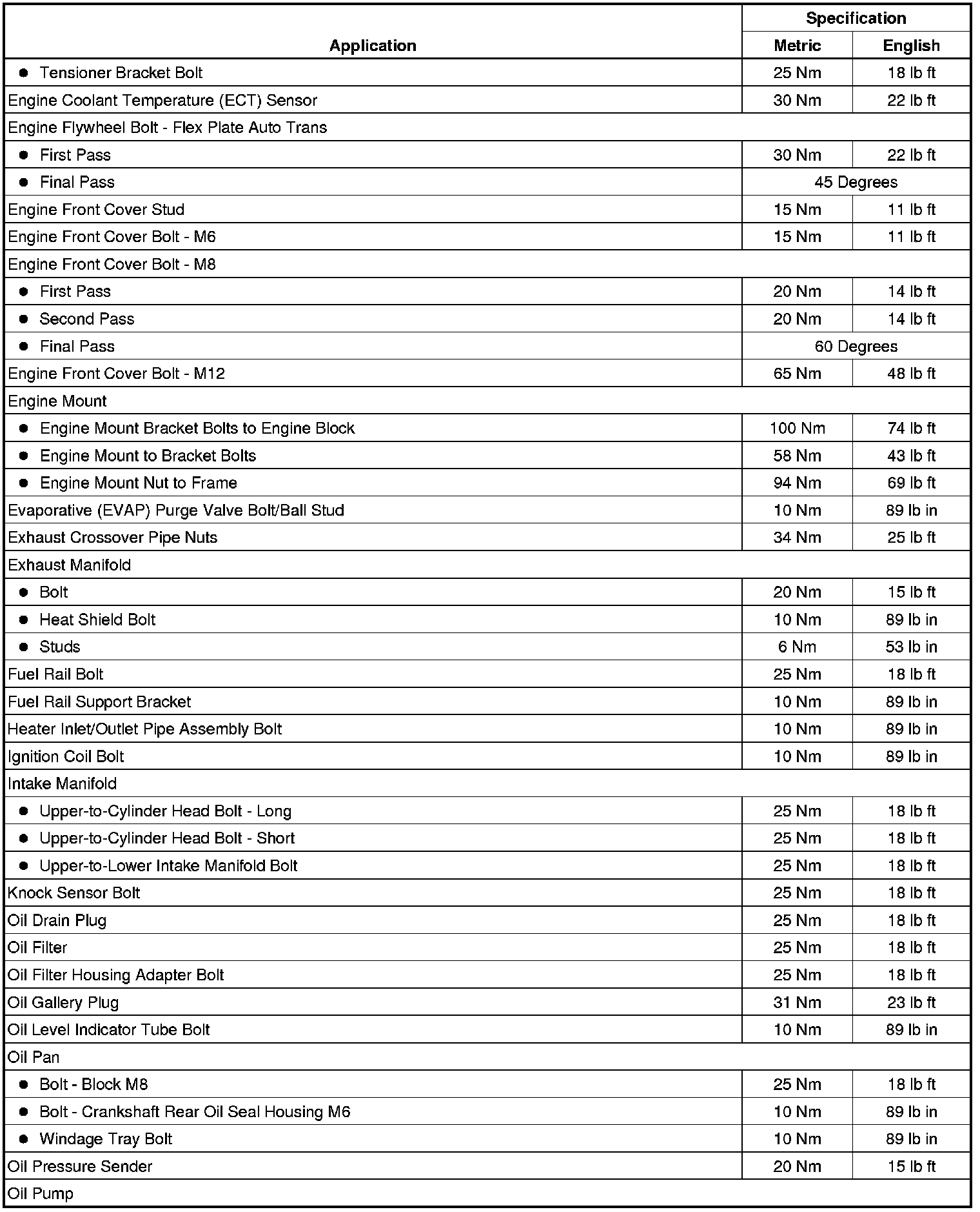 Fastener Tightening Specifications