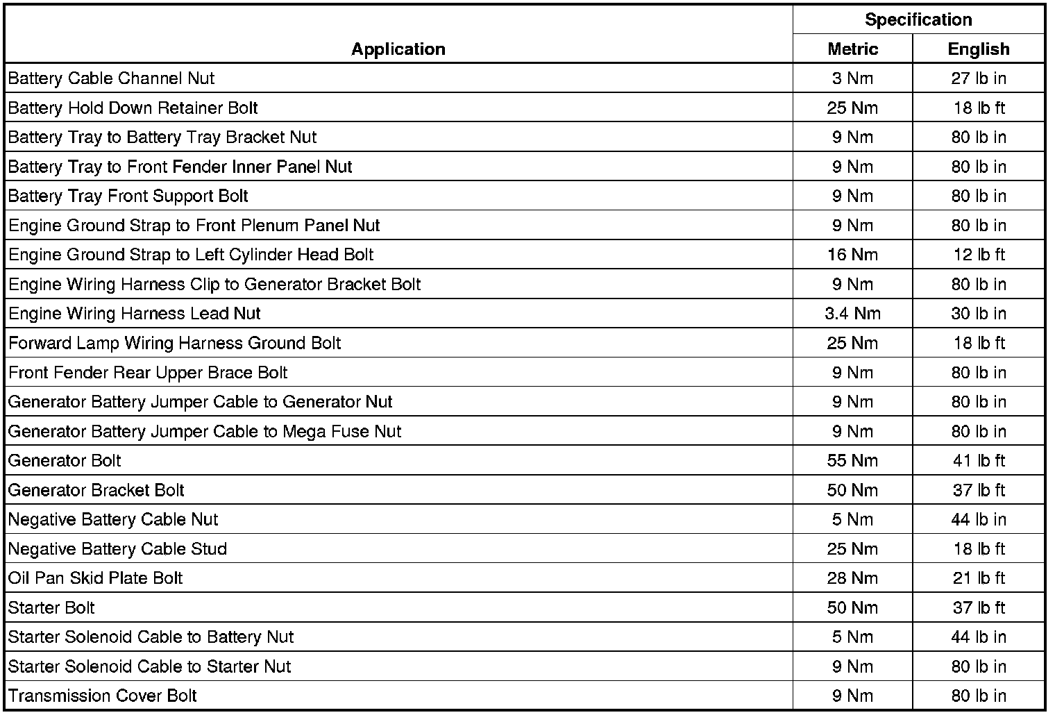 Fastener Tightening Specifications