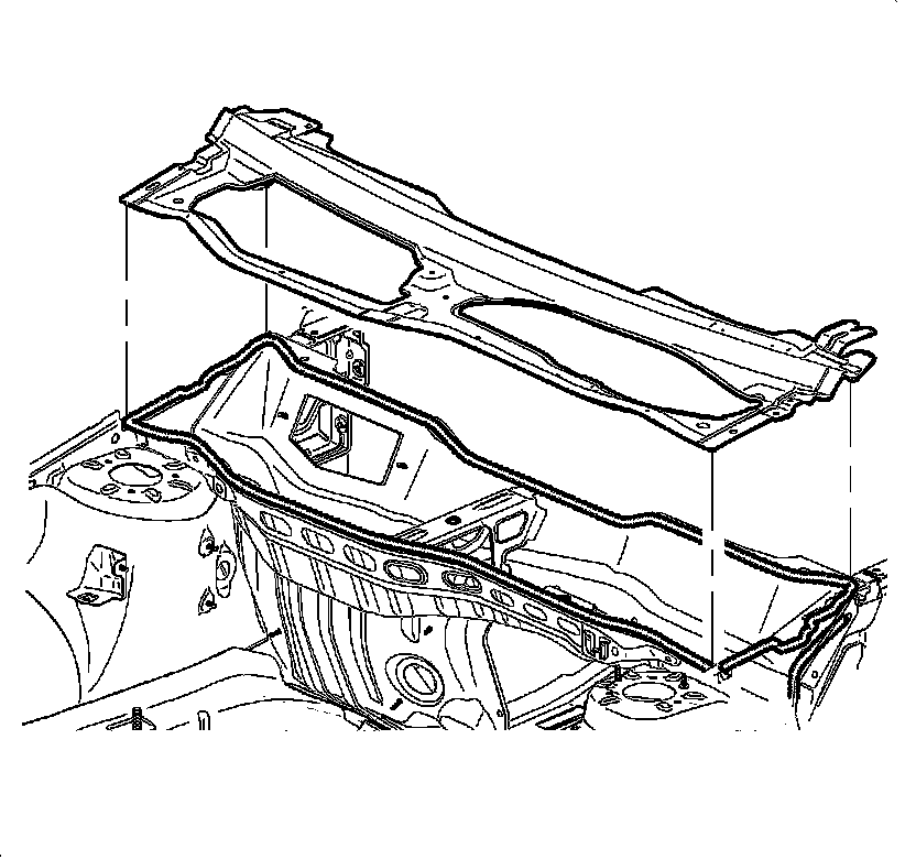 4.Position the plenum top panel to the vehicle using 3-dimensional measuring equipment. Clamp the plenum top panel into place.