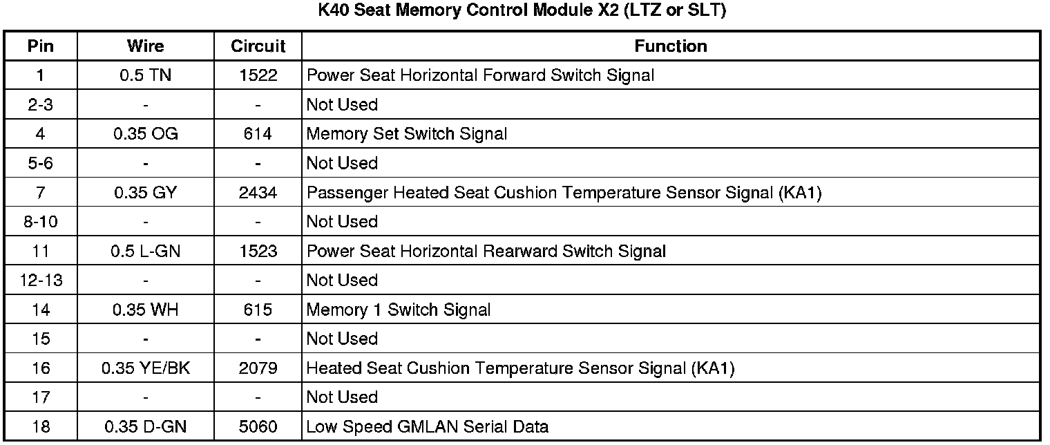 K40 Seat Memory Control Module X2 (LTZ or SLT)
