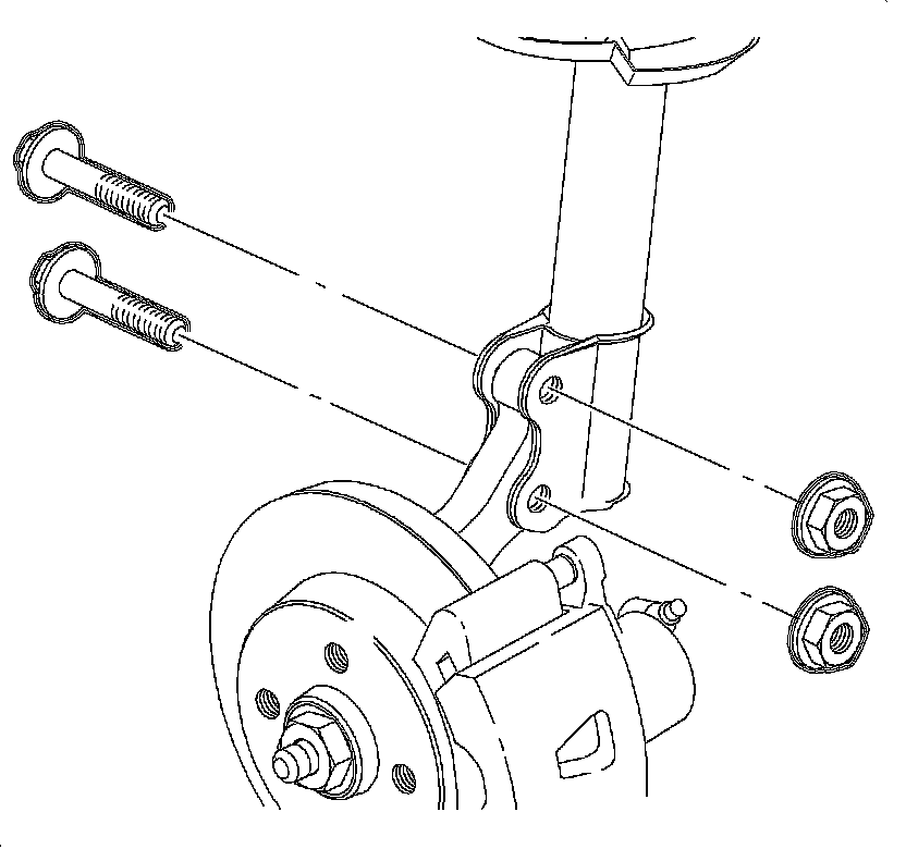 3. Remove the strut to knuckle nuts and bolts. Discard the nuts and bolts.