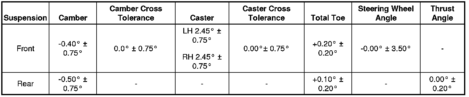Wheel Alignment Specifications