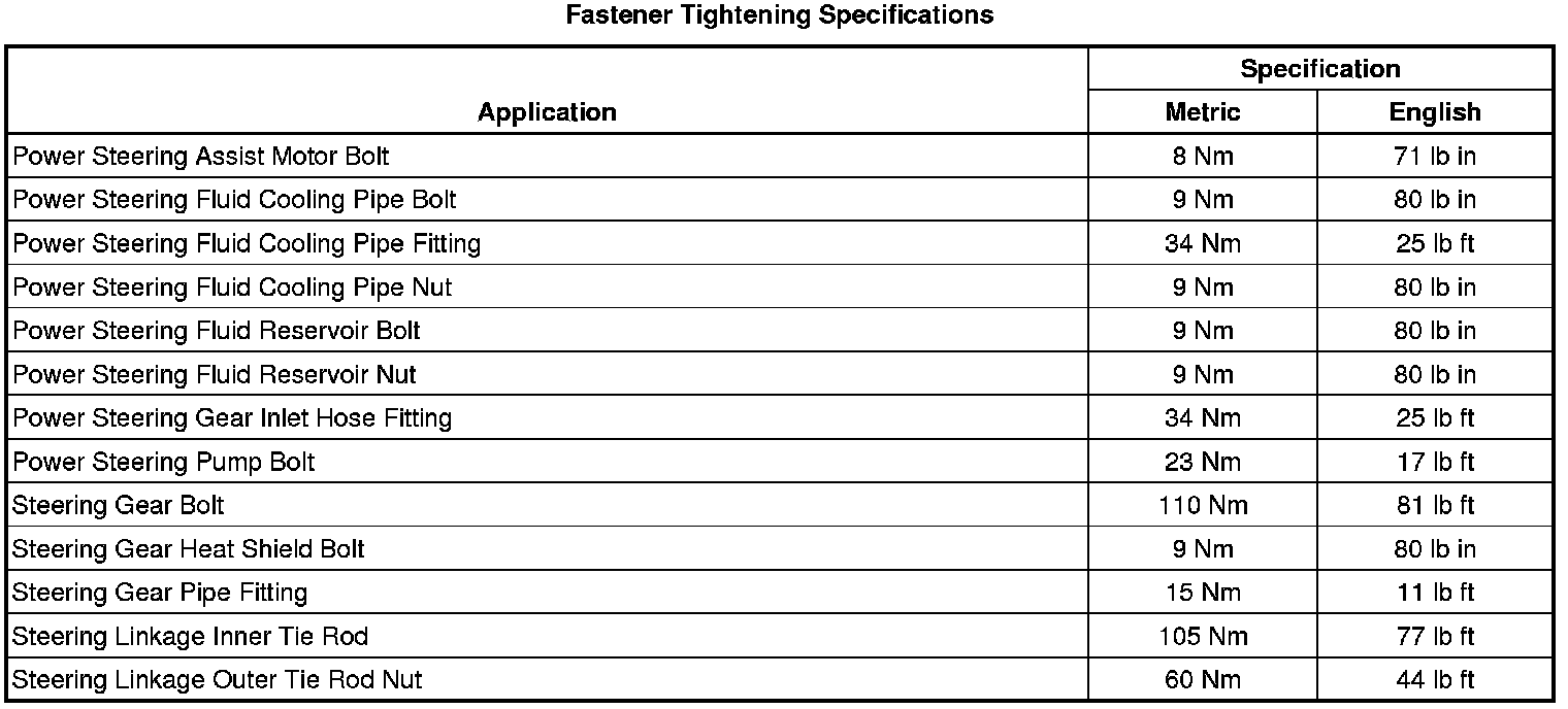 Fastener Tightening Specifications