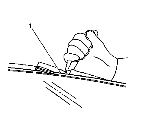 8. Using a utility knife, carefully cut the lace (1) from the sides and the top edge of the window to access the urethane adhesive bead, if equipped.