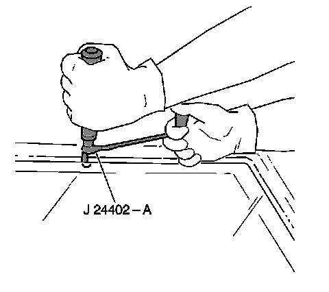 * Use J 24402-A - glass sealant (cold knife) remover, J 39032 - stationary glass removal tool, or equivalent to remove the window.