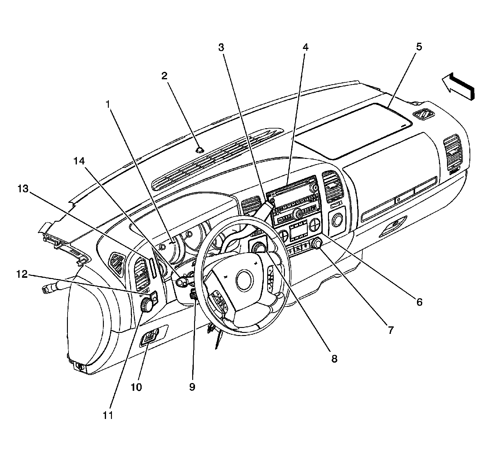 Home >> GMC >> 2012 >> Yukon 2WD V8-5.3L >> Repair and Diagnosis >> Heating and Air Conditioning >> Control Module HVAC >> Locations >> HVAC Control Module >> Instrument Panel Components (without YE9)