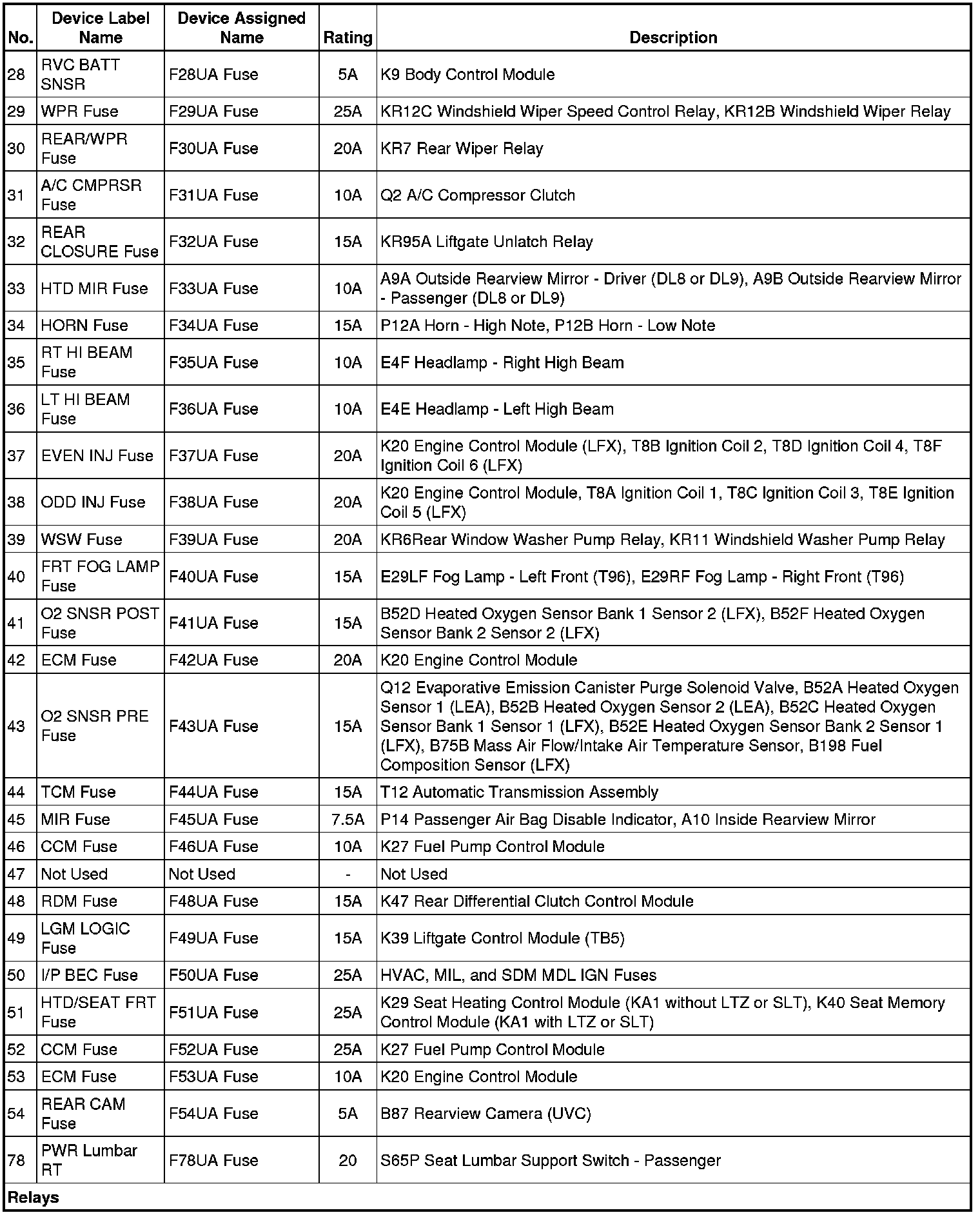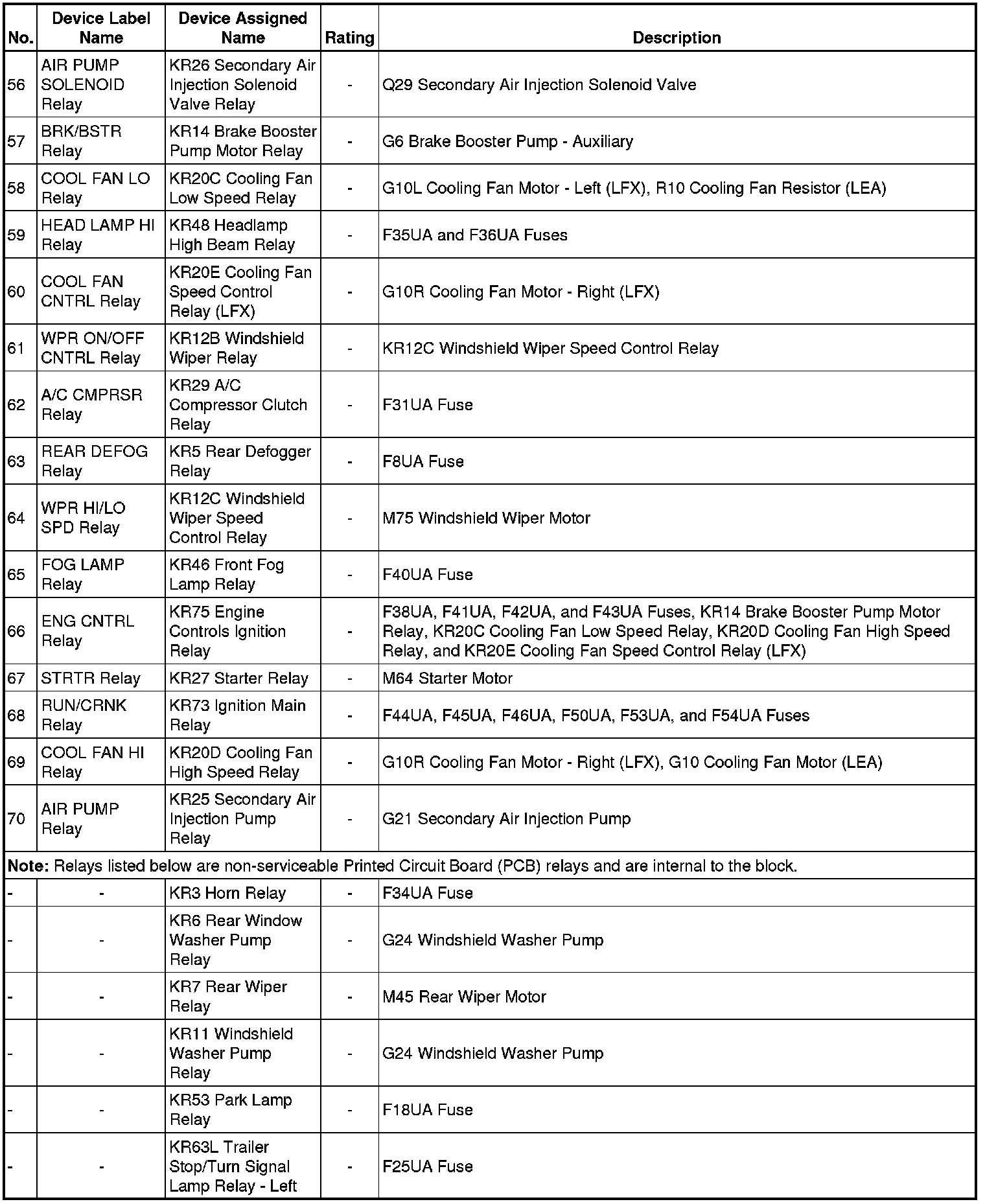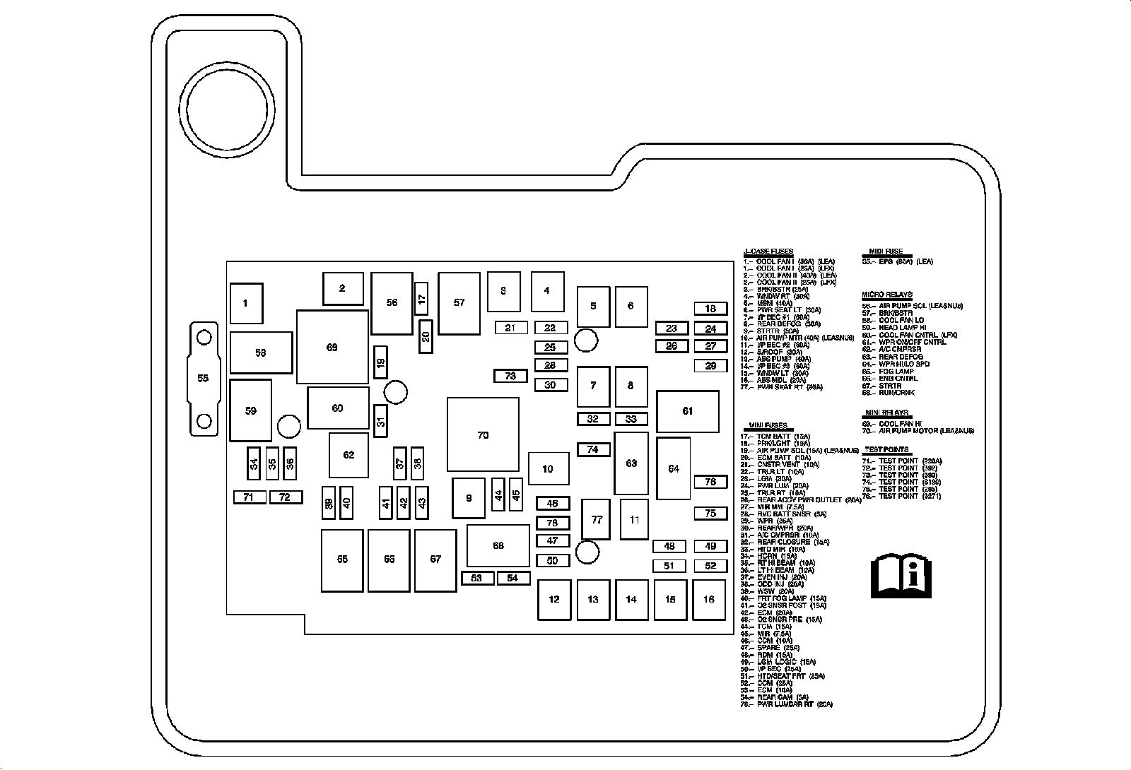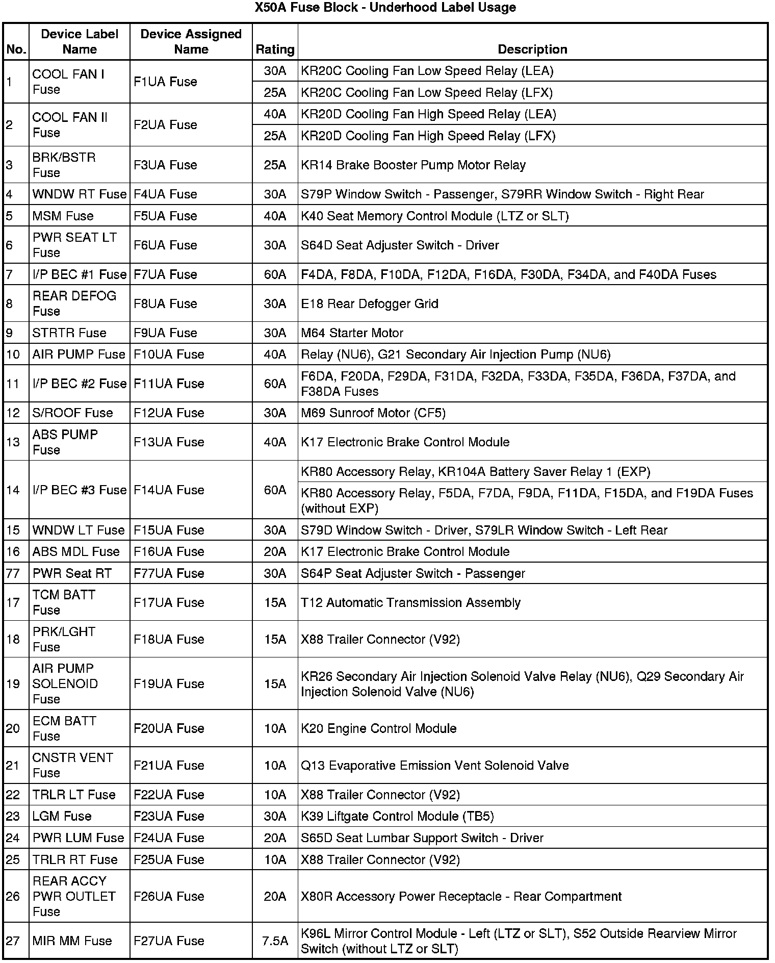 X50A Fuse Block - Underhood Label
