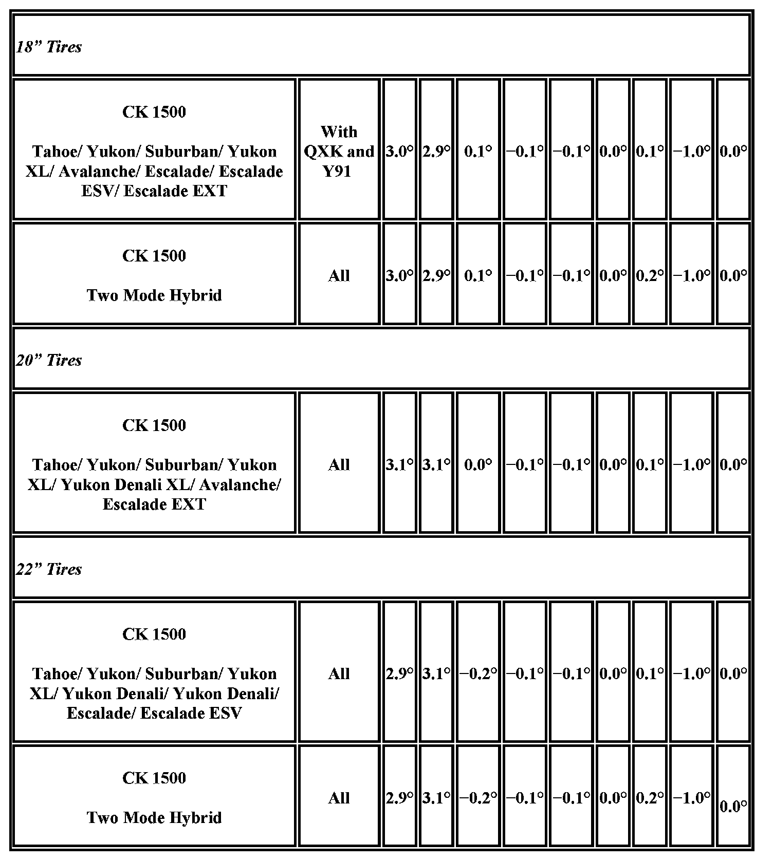 Wheel Alignment Specifications