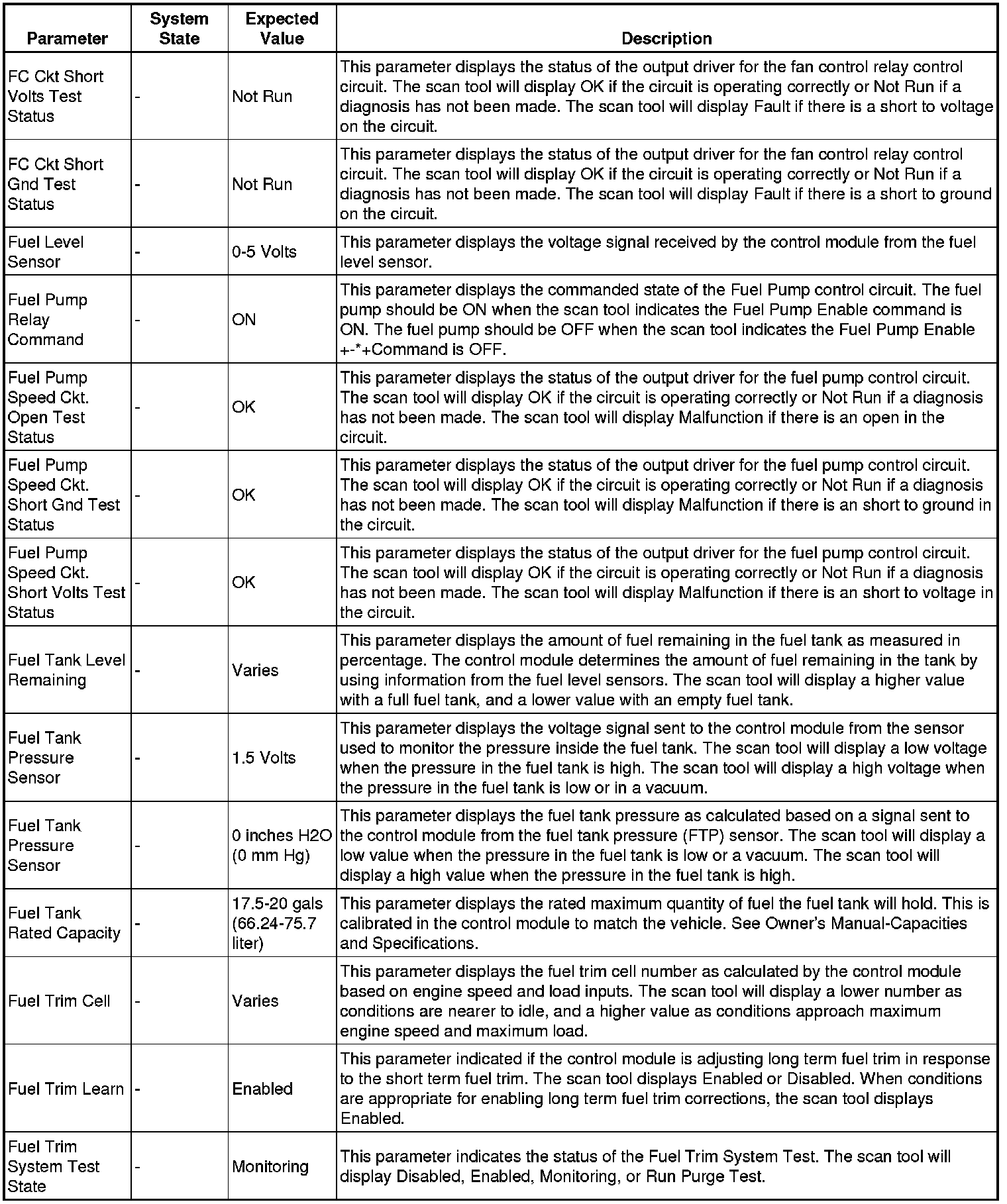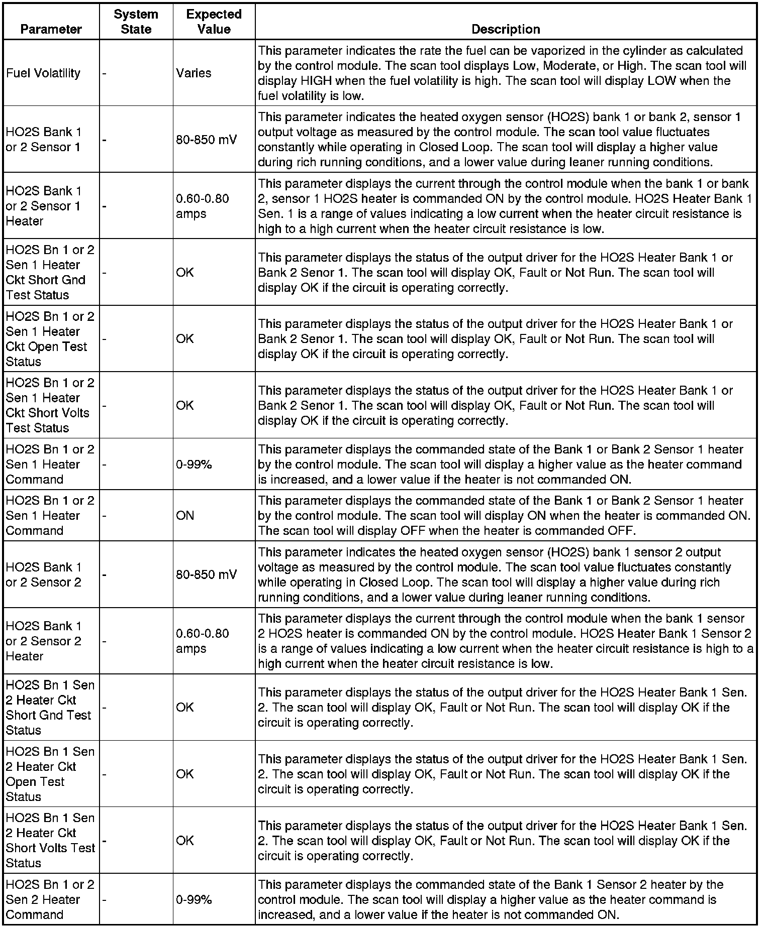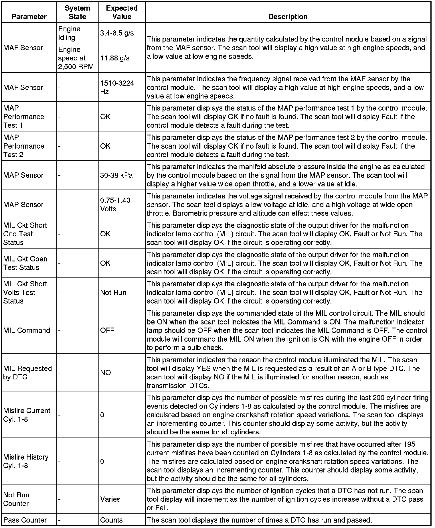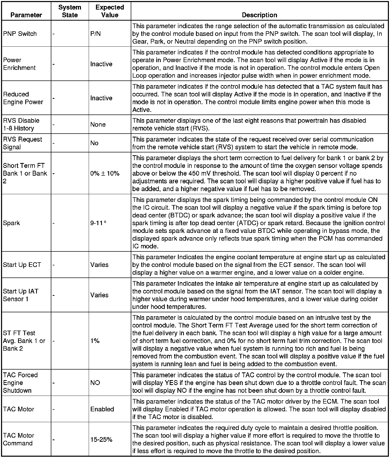 The scan tool values from a properly running engine may be used for comparison with the engine you are diagnosing. The engine scan tool data list represents values that would be seen on a normally running engine.