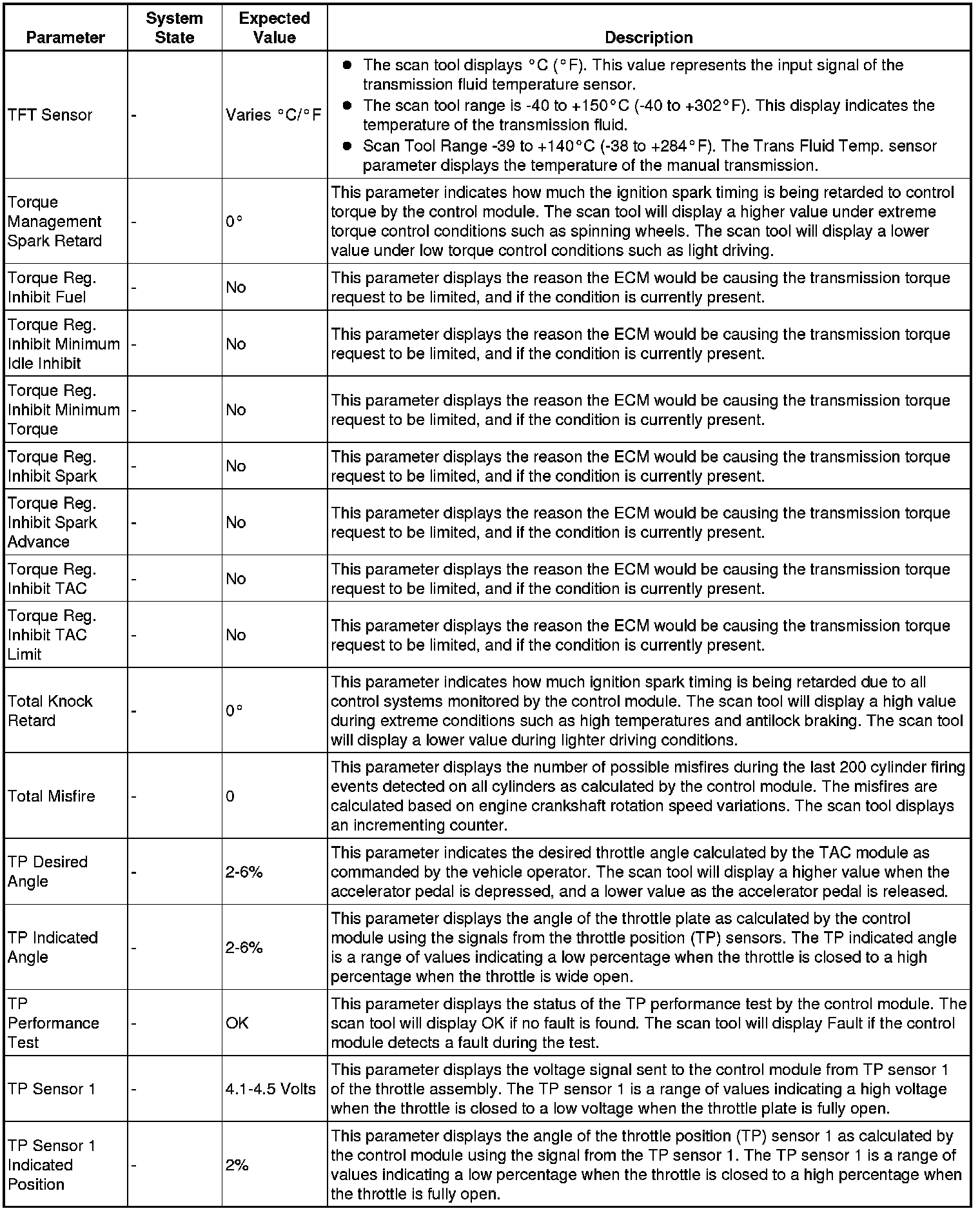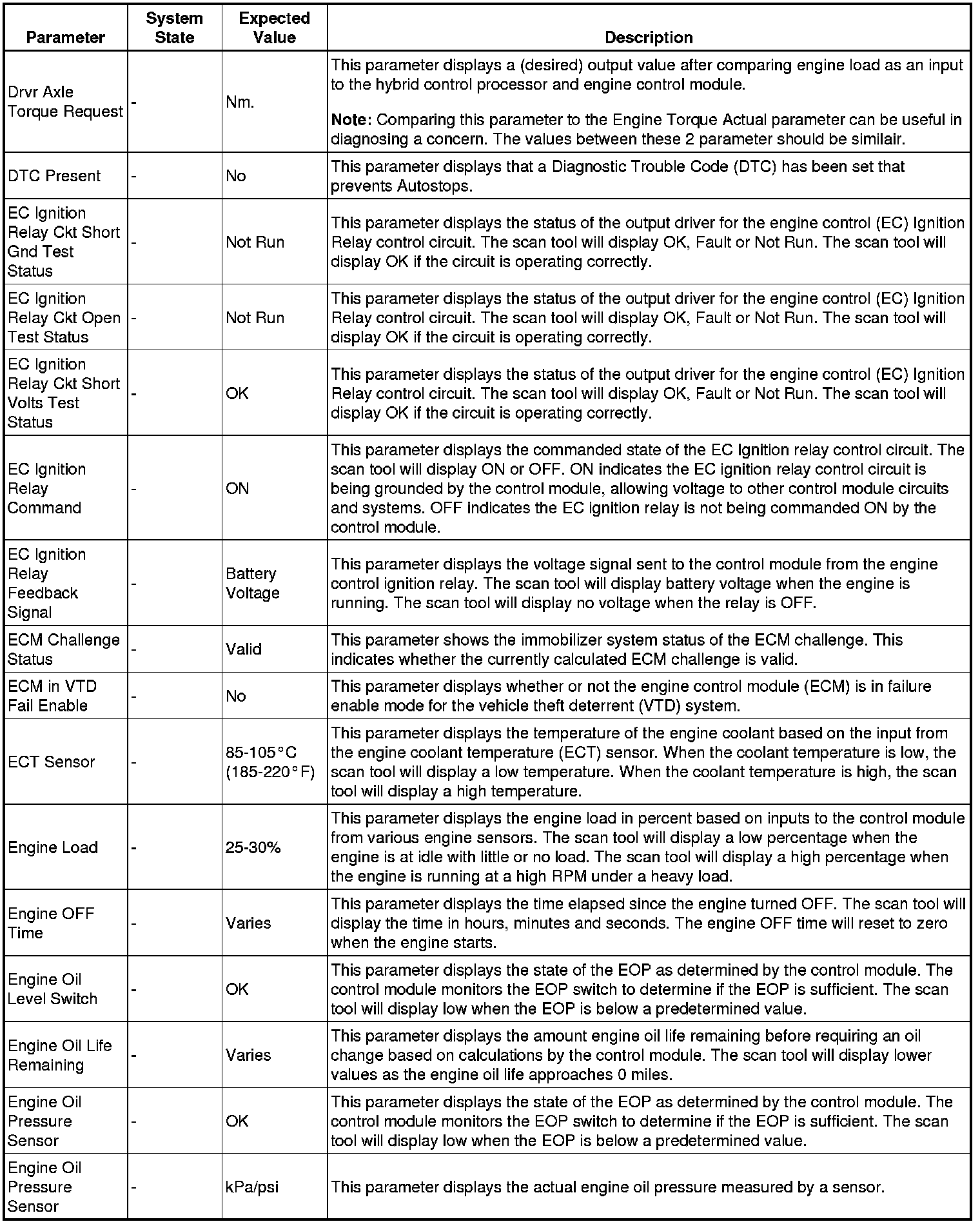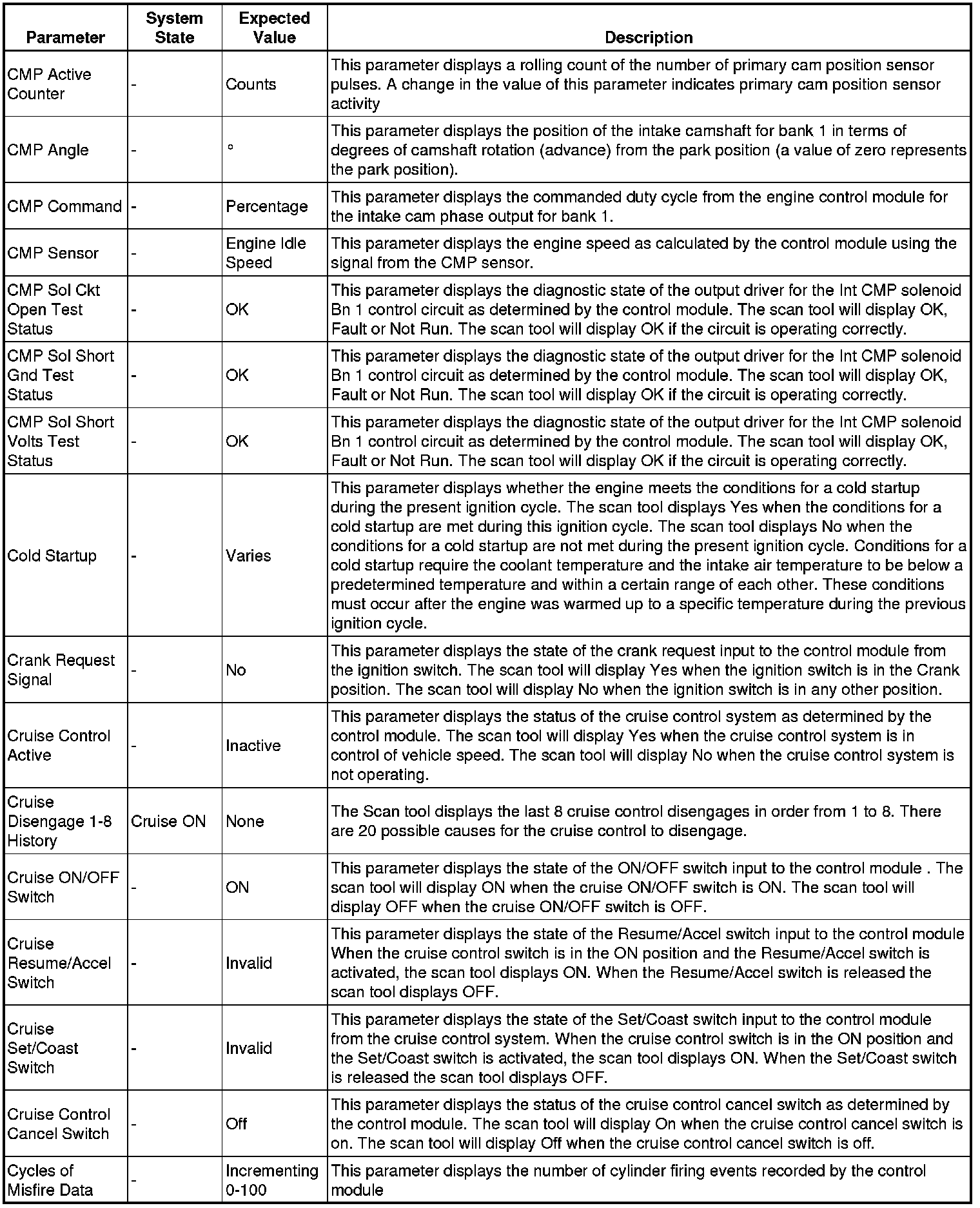 The Engine Control Module Scan Tool Data List contains all engine-related parameters that are available on the scan tool. The list is arranged in alphabetical order. A given parameter may appear in any one of the data lists, and in some cases may appear more than once, or in more than one data list in order to group certain related parameters together.