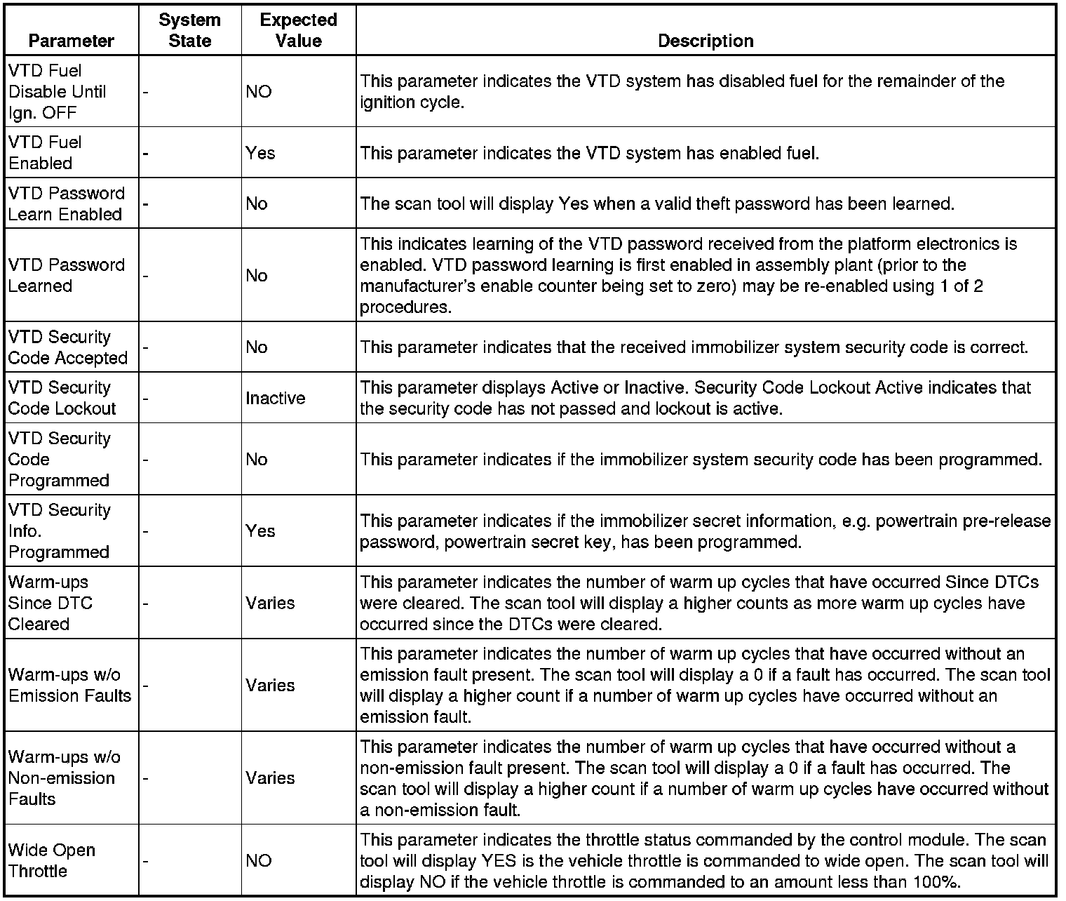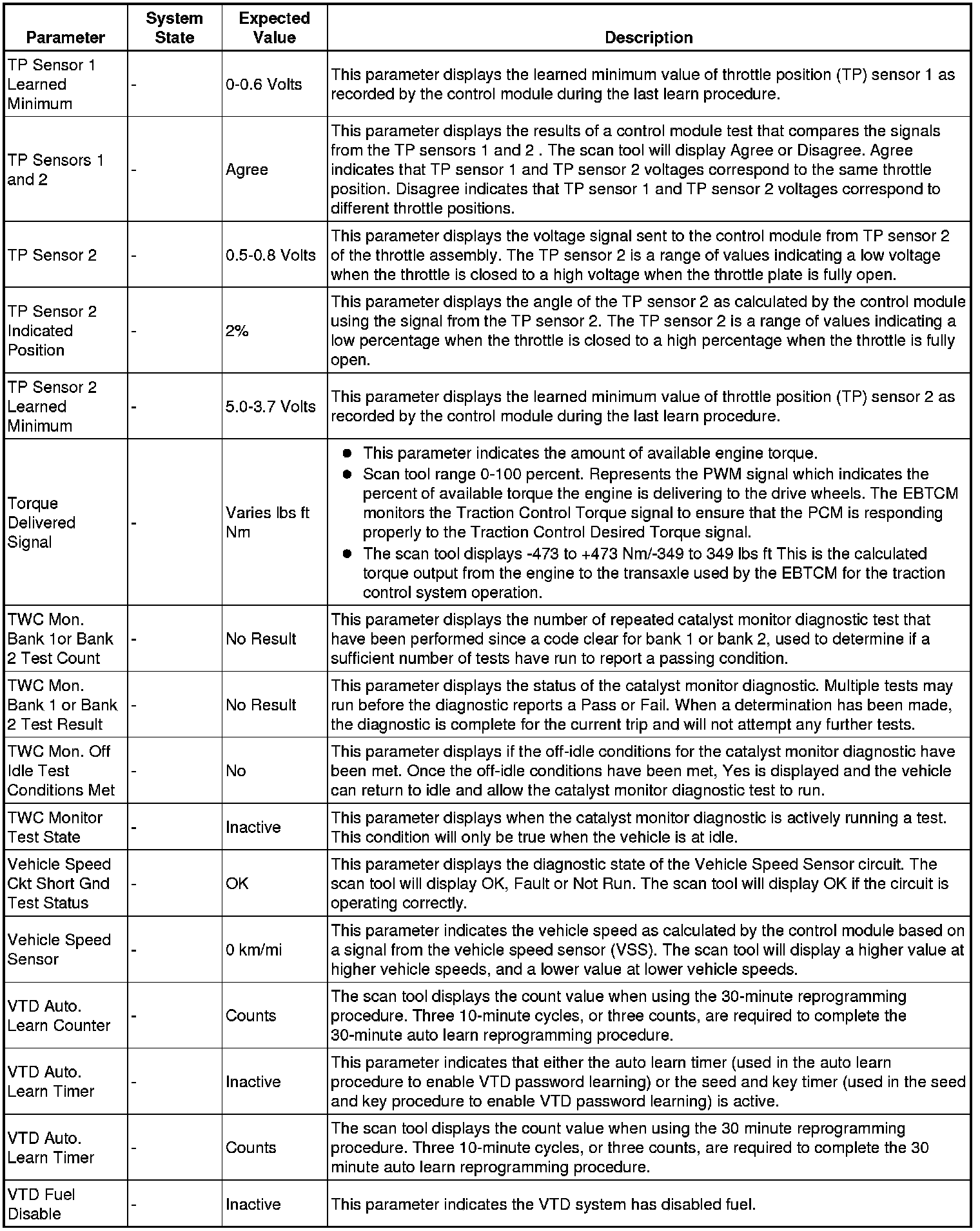 Only the parameters listed below are referenced in this service manual for use in diagnosis.