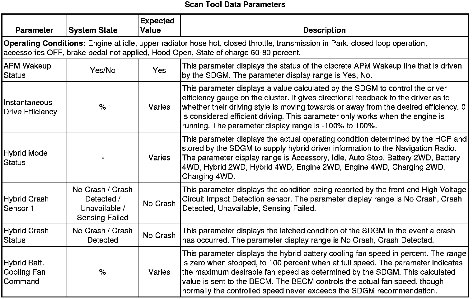 The Serial Data Gateway Module (SDGM) Scan Tool Data List contains all module parameters that are available on the scan tool. The list is arranged in alphabetical order. A given parameter may appear in any one of the data lists, and in some cases may appear more than once, or in more than one data list in order to group certain related parameters together.