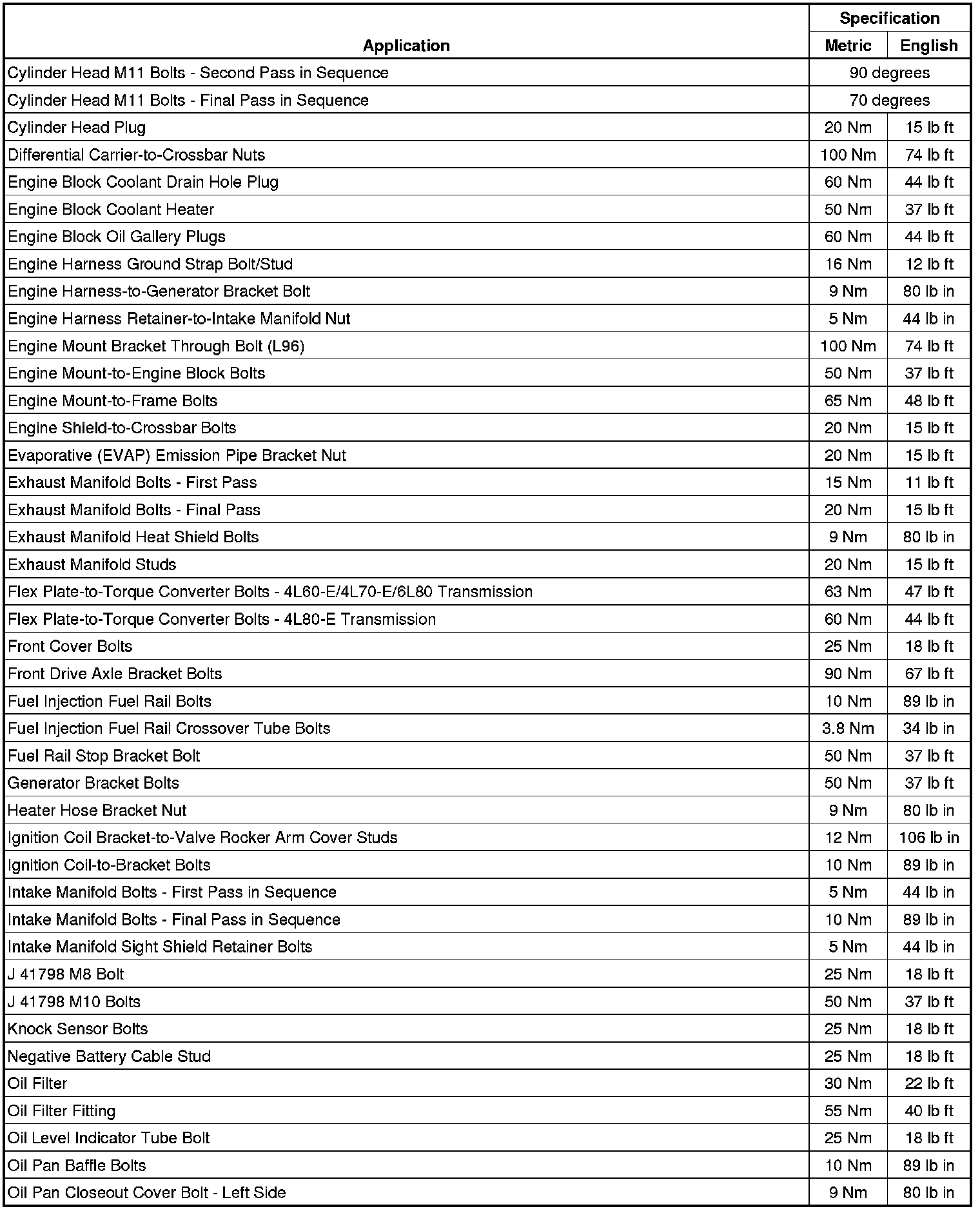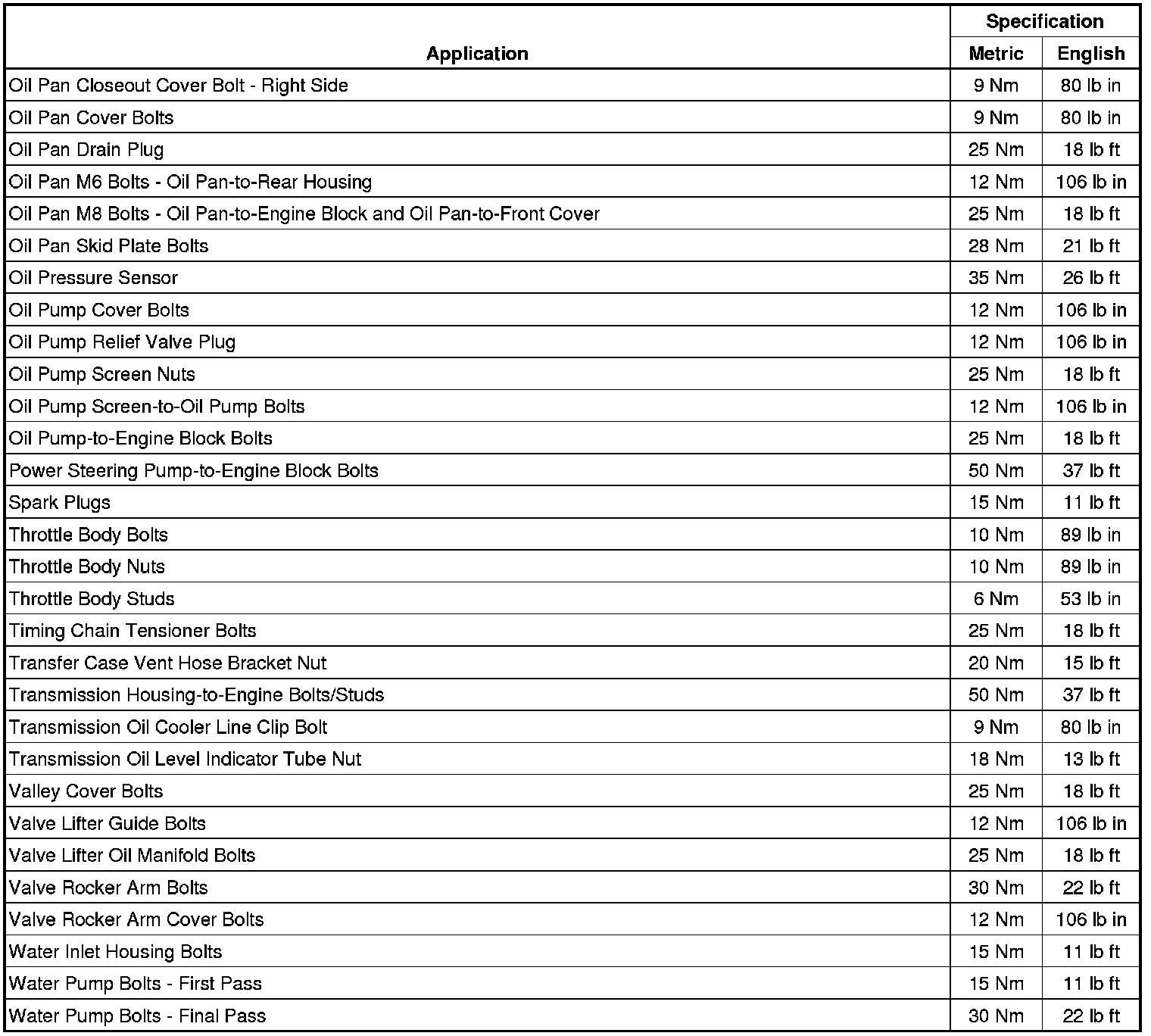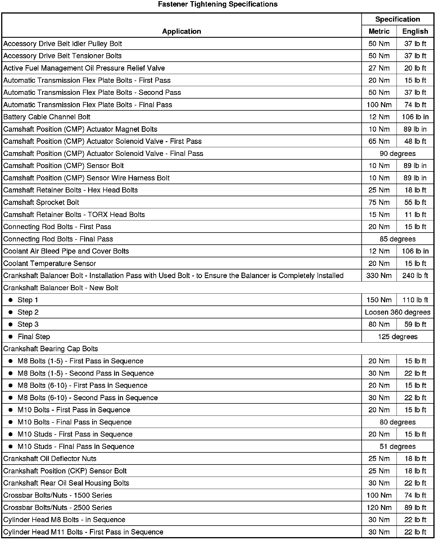 Fastener Tightening Specifications