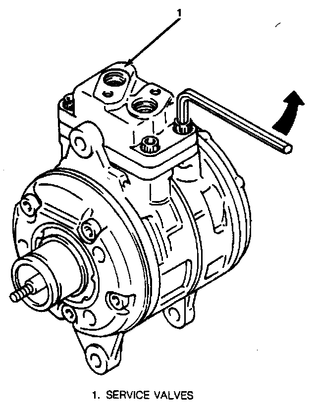 2. When replacing the compressor with a new one, drain 40 cc (2.4 cu. in.) of compressor oil from the new compressor, because it contains approximately 80 cc (2.8 cu. in.) of compressor oil.