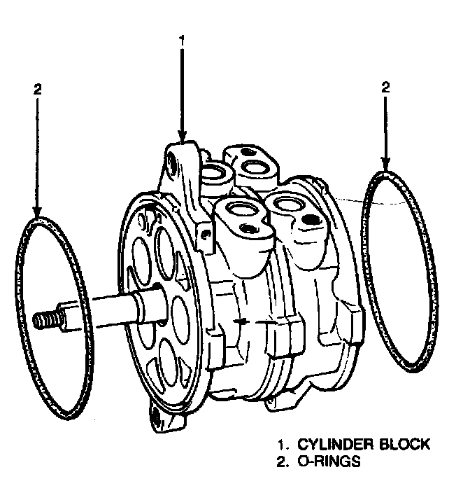 14. Remove front and rear O-rings from the cylinder block. Discard the O-rings.