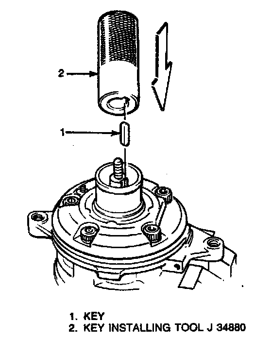 a. Using a plastic hammer and key installing tool J 34880 tip the key lightly.