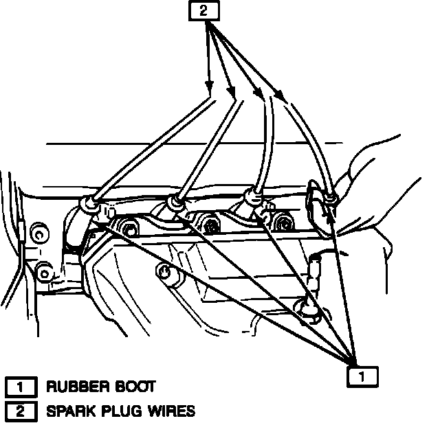 2. Remove the spark plug wires from the spark plugs by gripping boot firmly. Turn the boot one half turn when removing the wire.